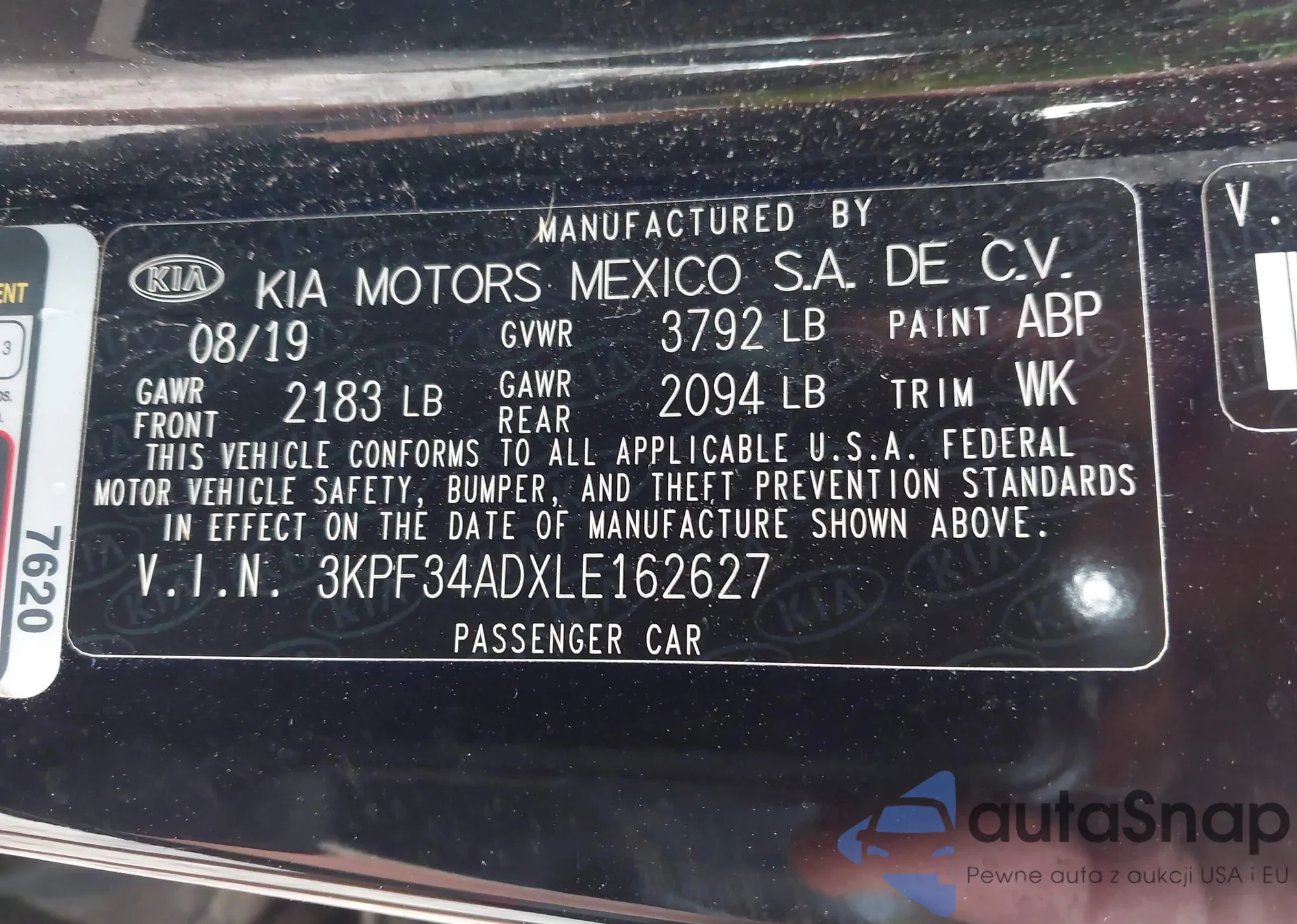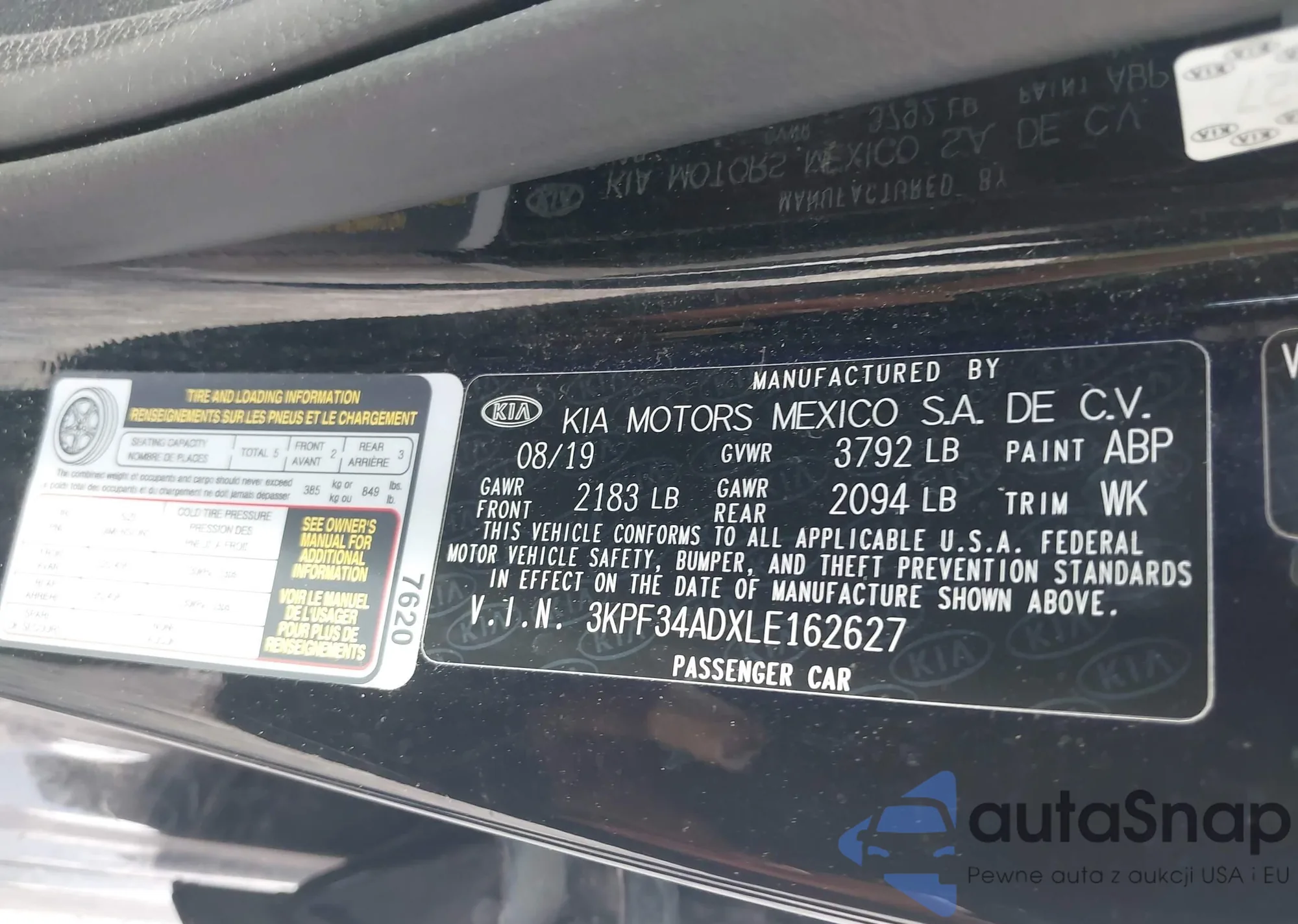 2020 Kia Forte Gt-Line z USA, uszkodzony, nr VIN 3KPF34ADXLE162627