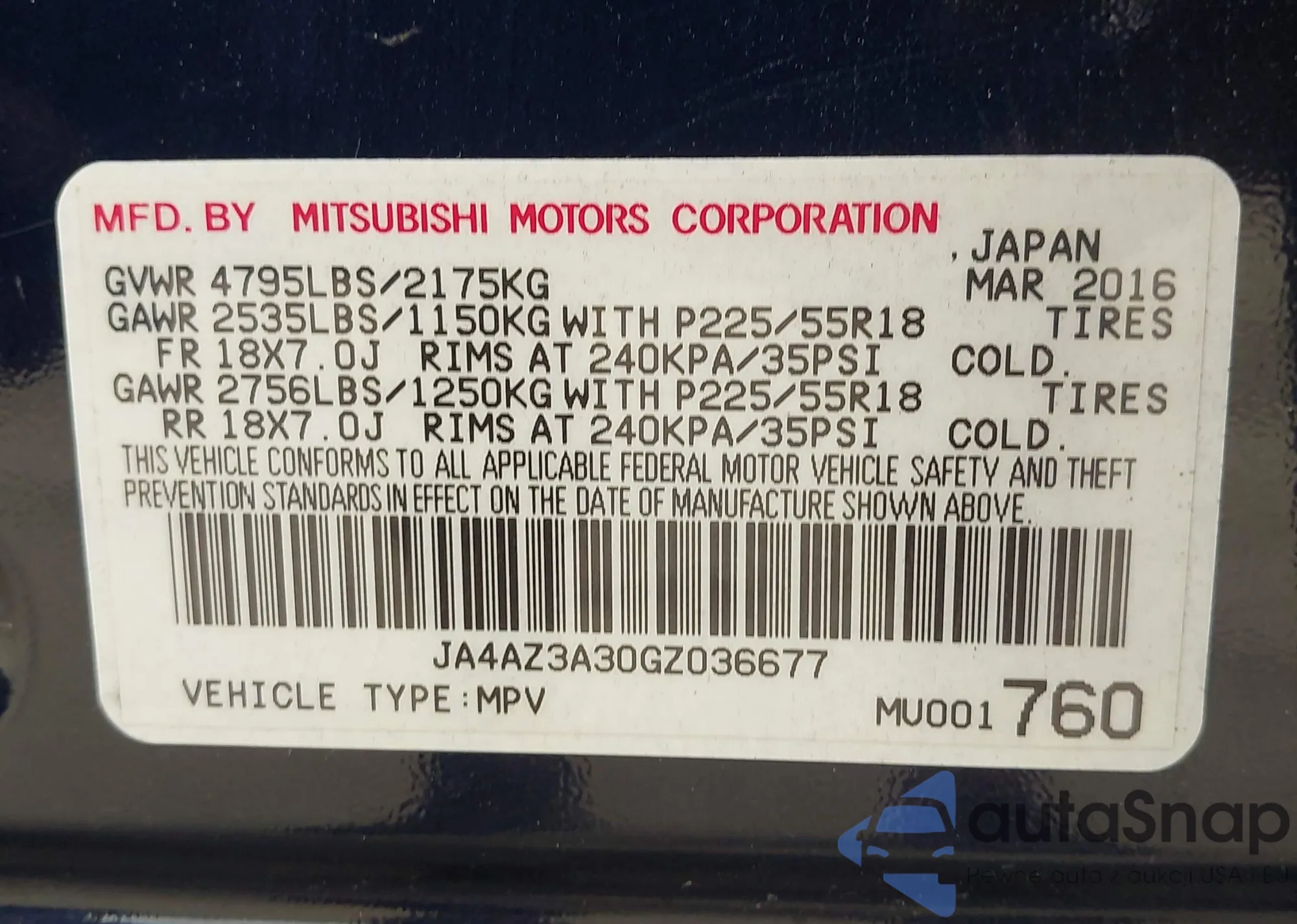 • VIN JA4AZ3A30GZ036677