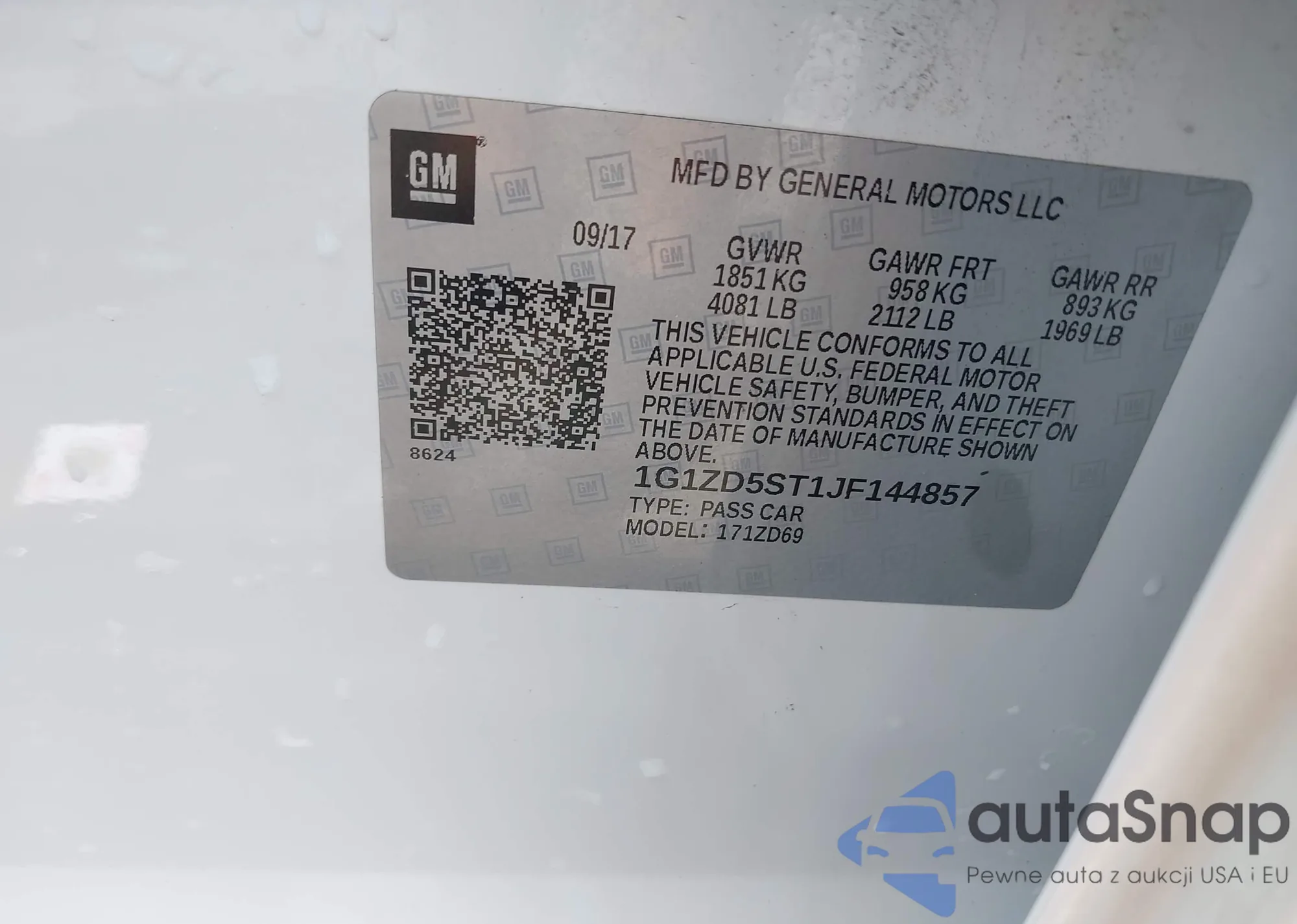 • VIN 1G1ZD5ST8KF163679