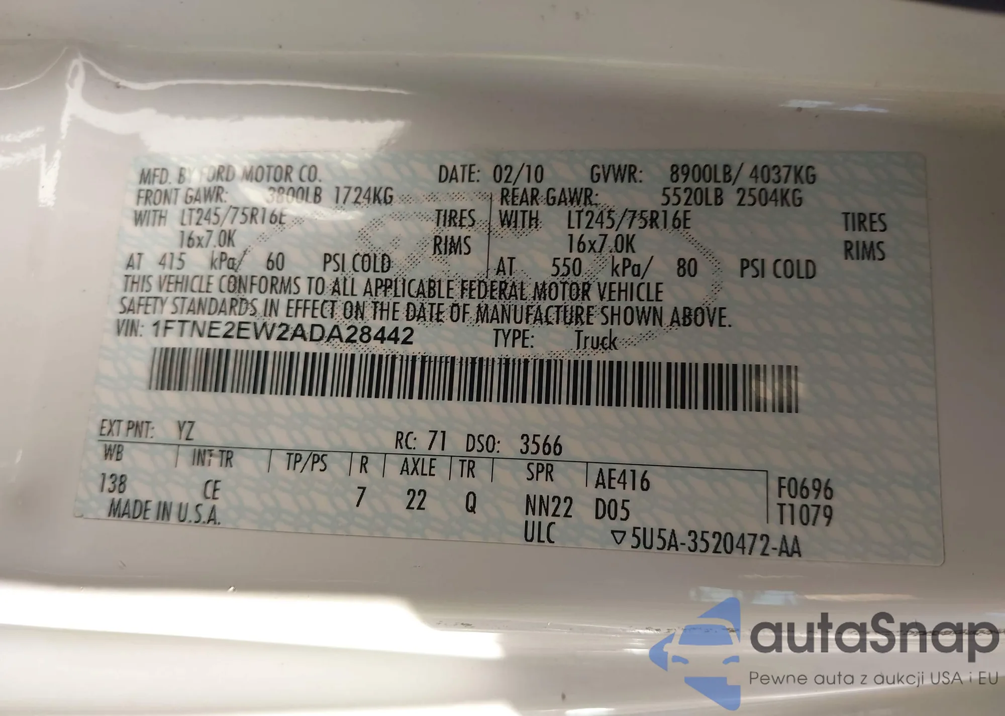 • VIN 1FTNE2EW2ADA28442