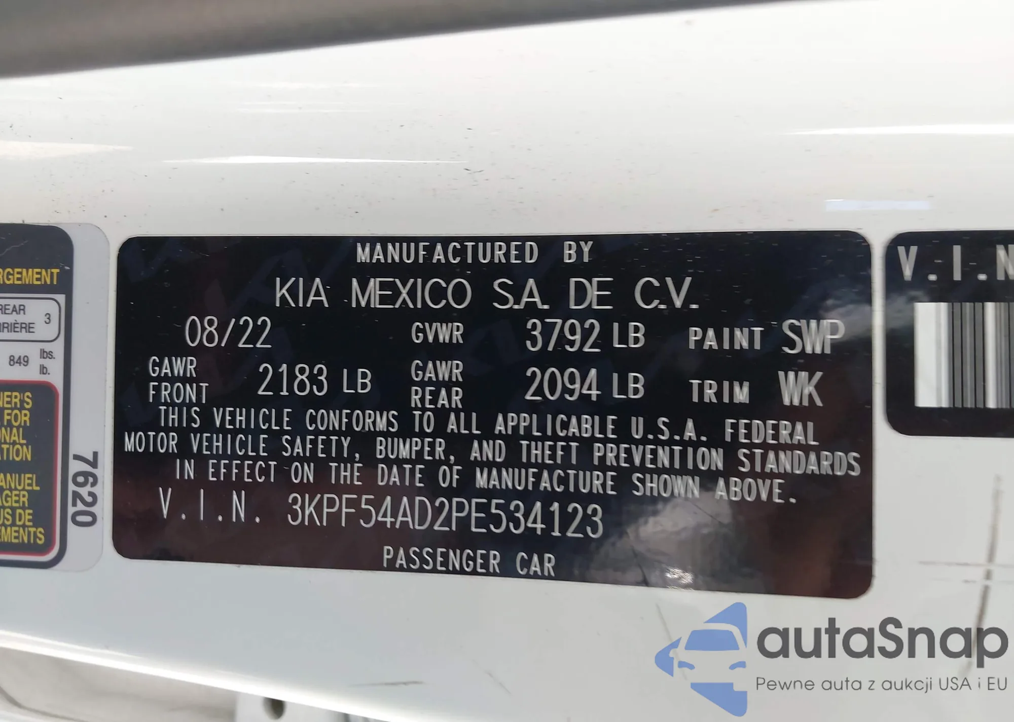 • VIN 3KPF54AD2PE534123