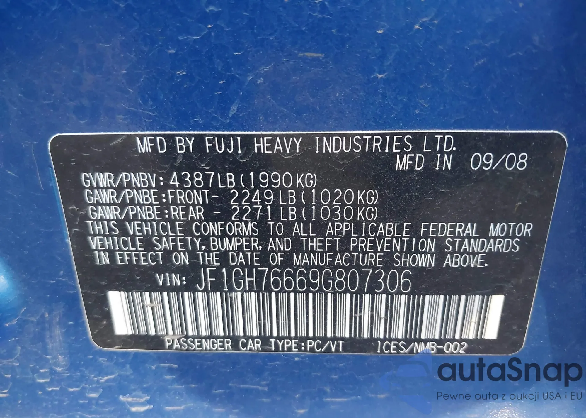 LOT: 43466076 VIN: JF1GH76669G807306