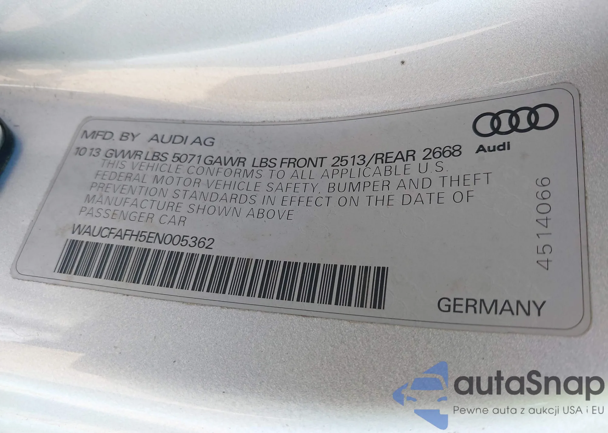 LOT: 43699496 VIN: WAUCFAFH5EN005362