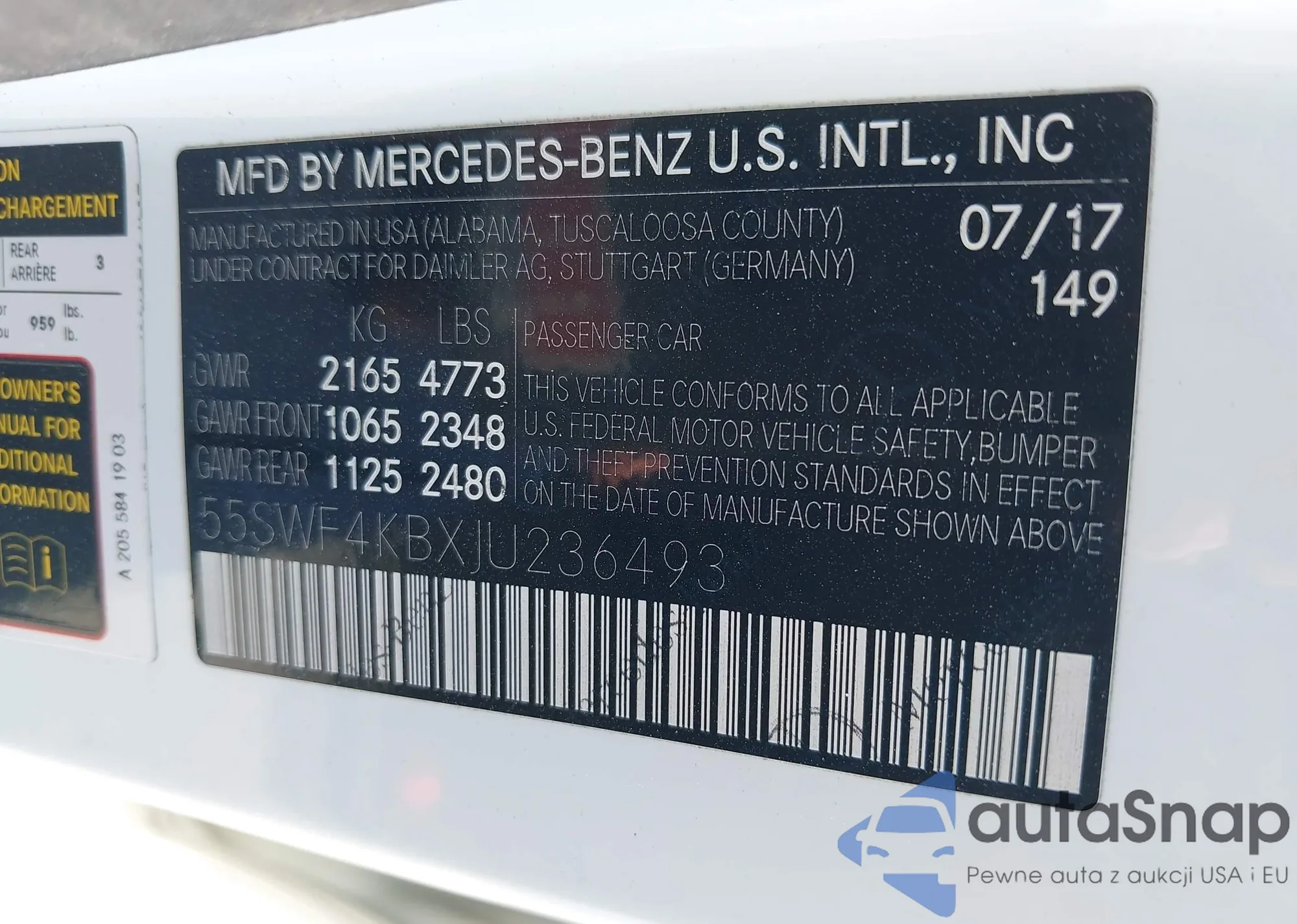 LOT: 42931437 VIN: 55SWF4KBXJU236493