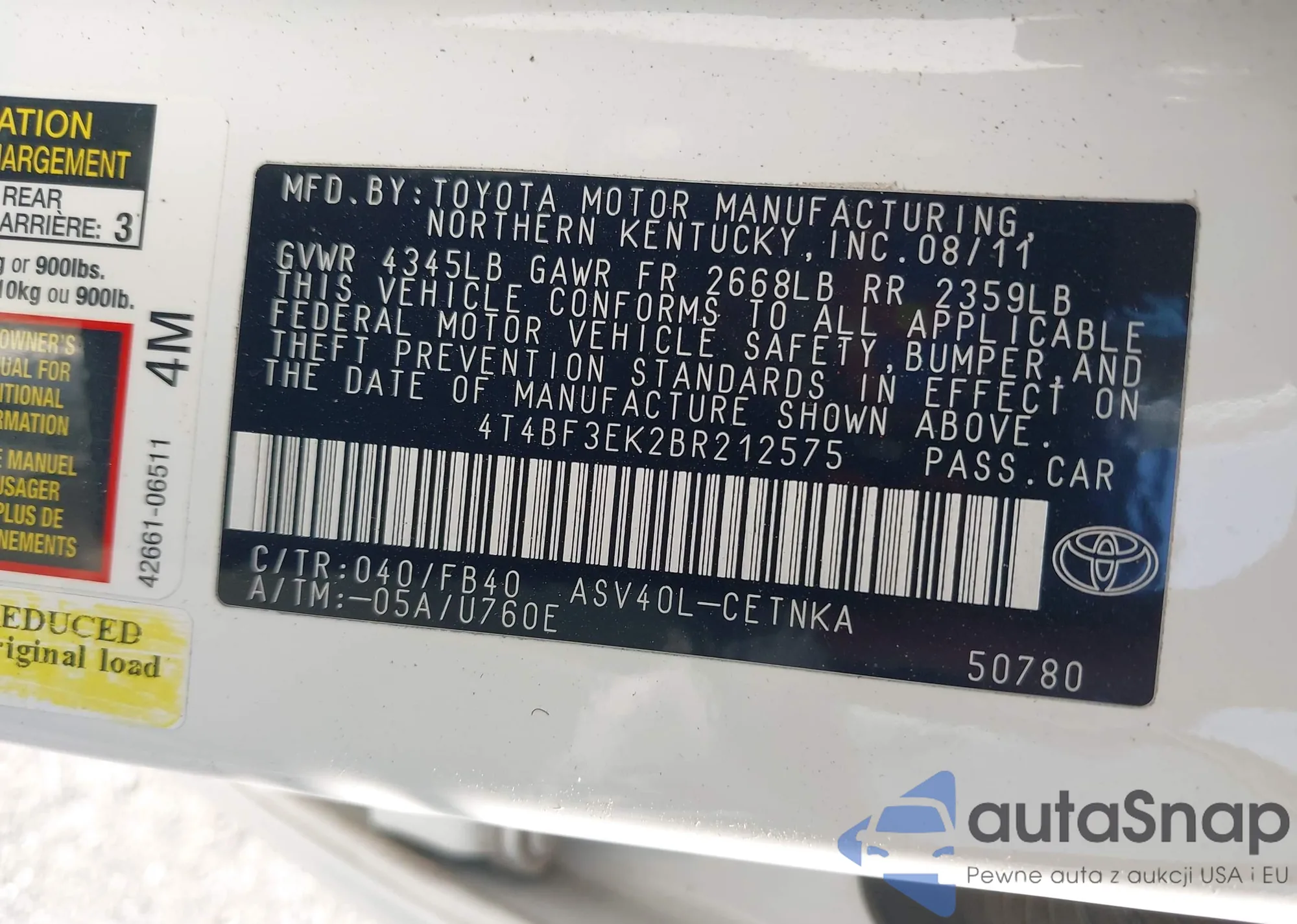 LOT: 43723010 VIN: 5XYKT3A15CG286810