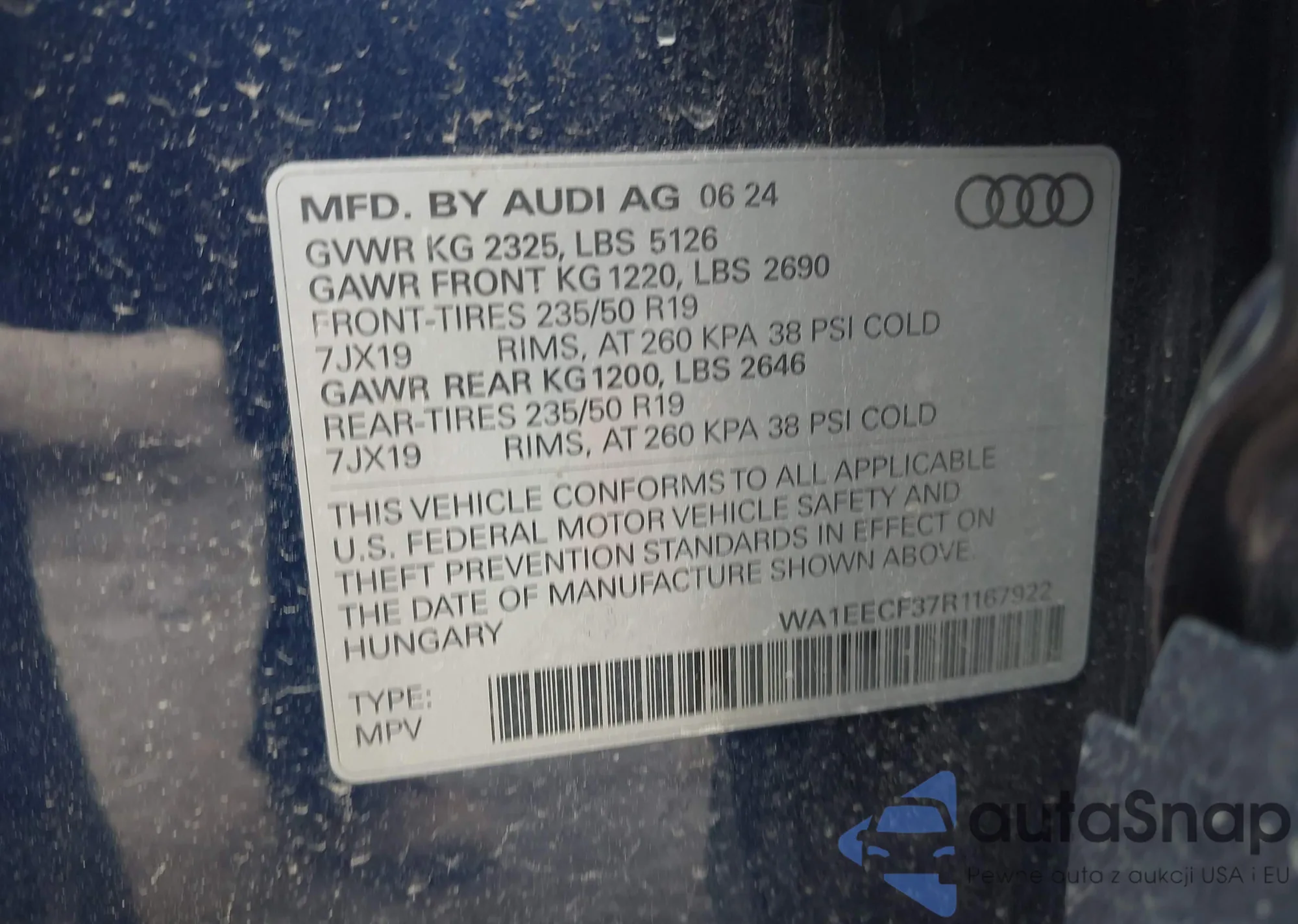 LOT: 42682564 VIN: WA1EECF37R1167922