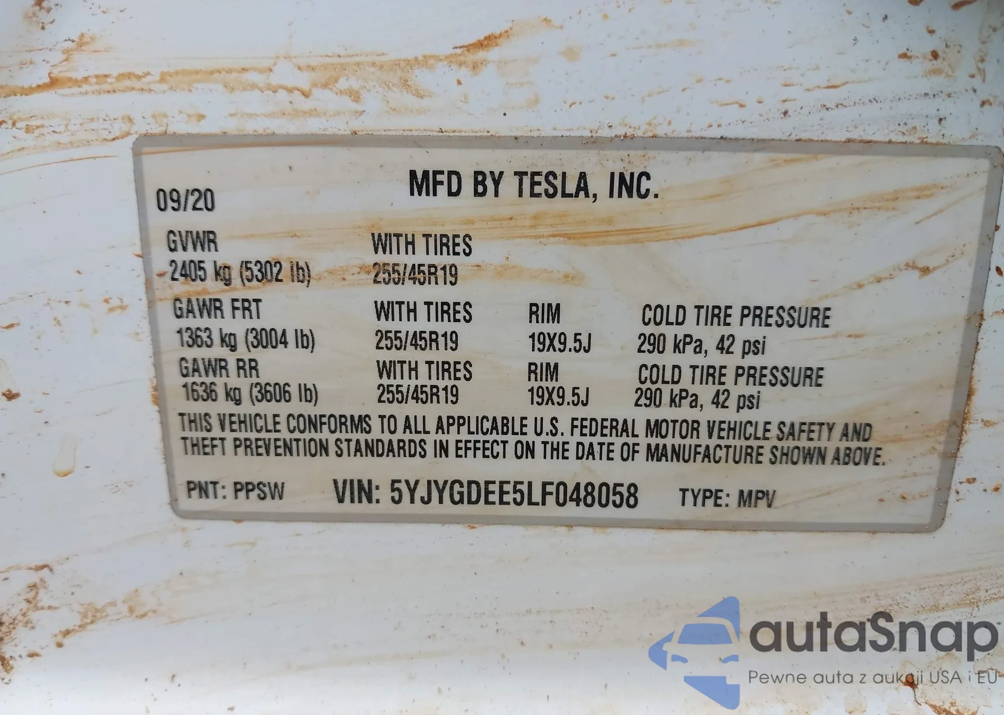 LOT: 42719766 VIN: 5YJYGDEE5LF048058