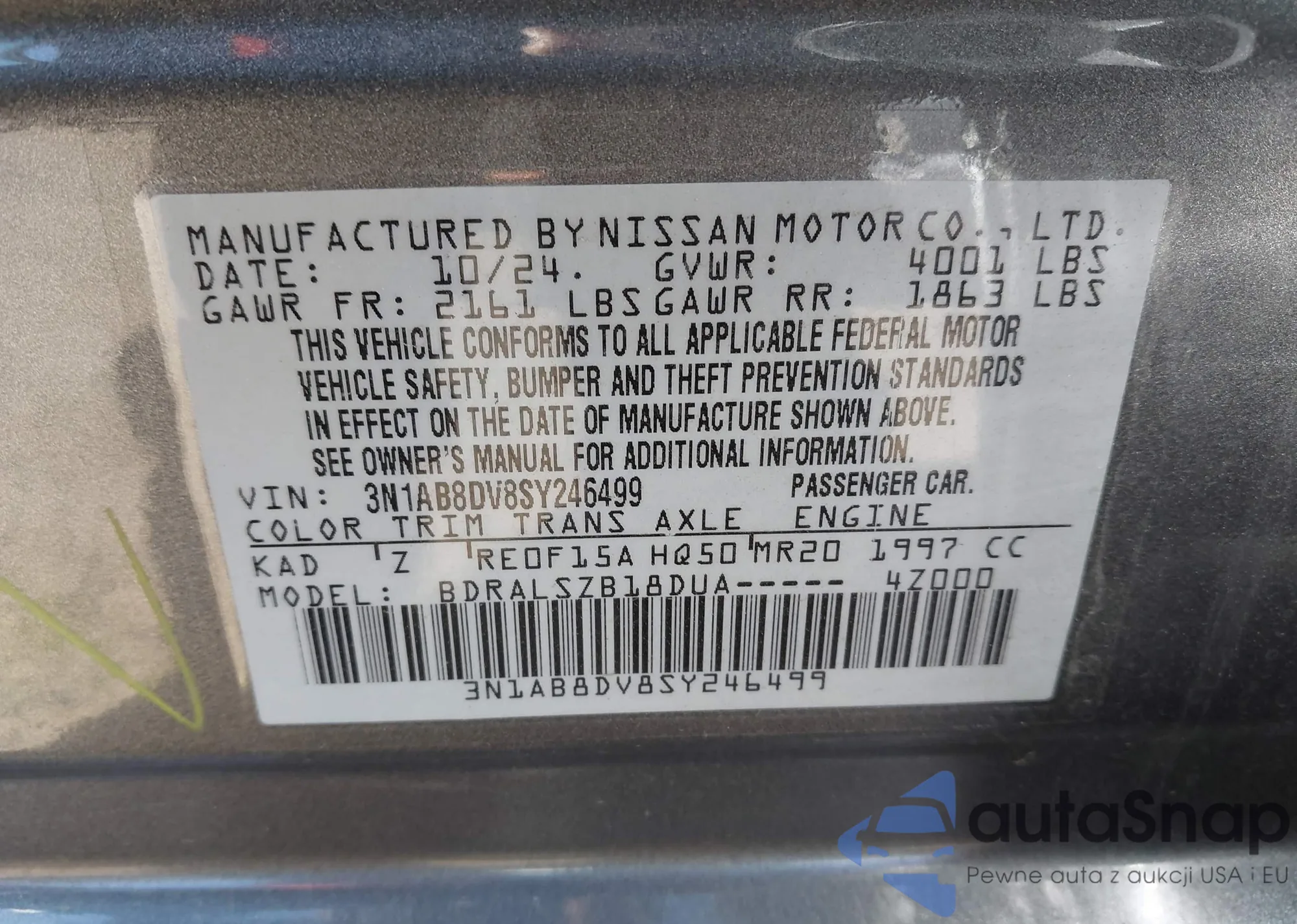 • VIN 3N1AB8DV8SY246499