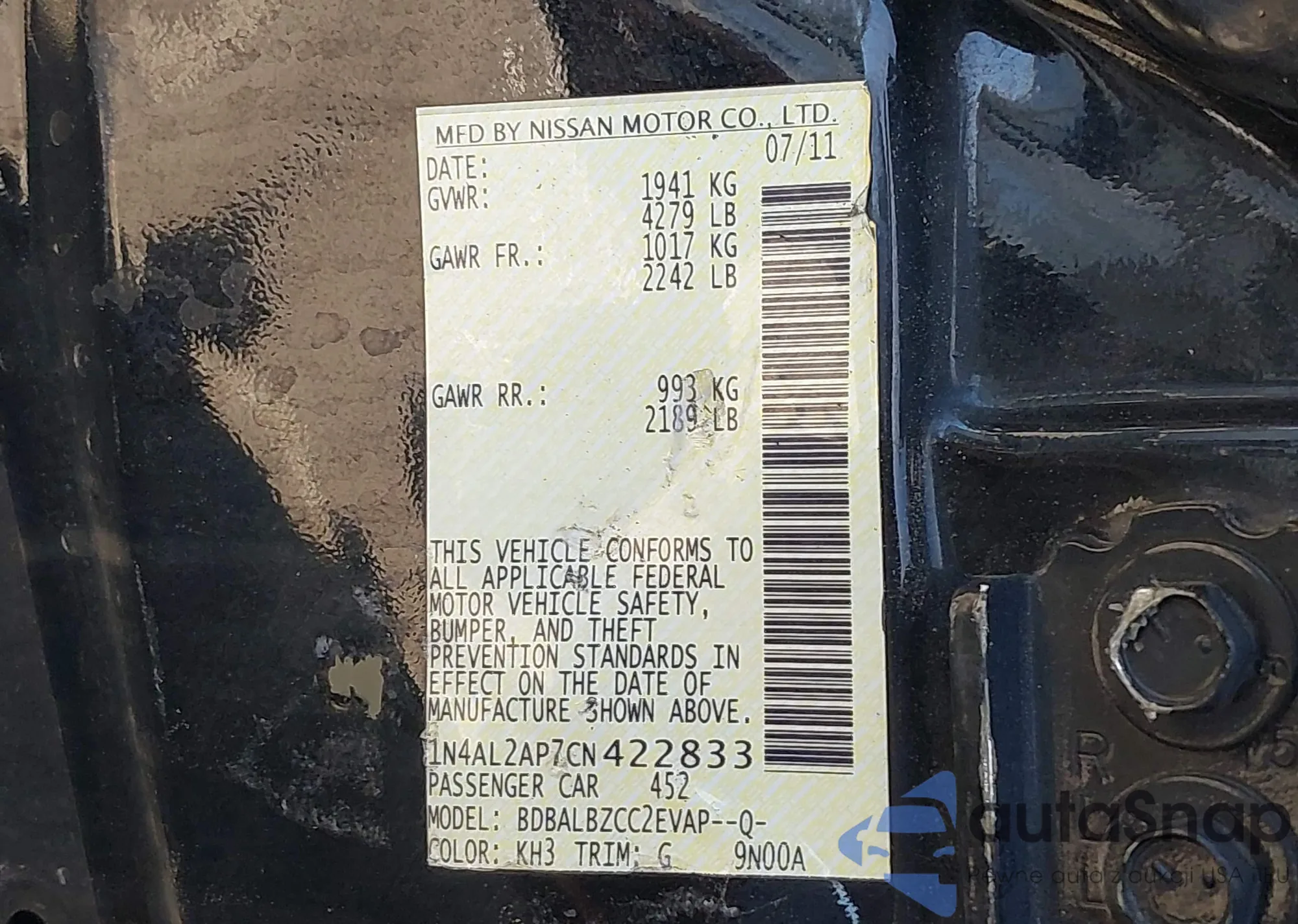 • VIN 1N4AL2AP7CN422833
