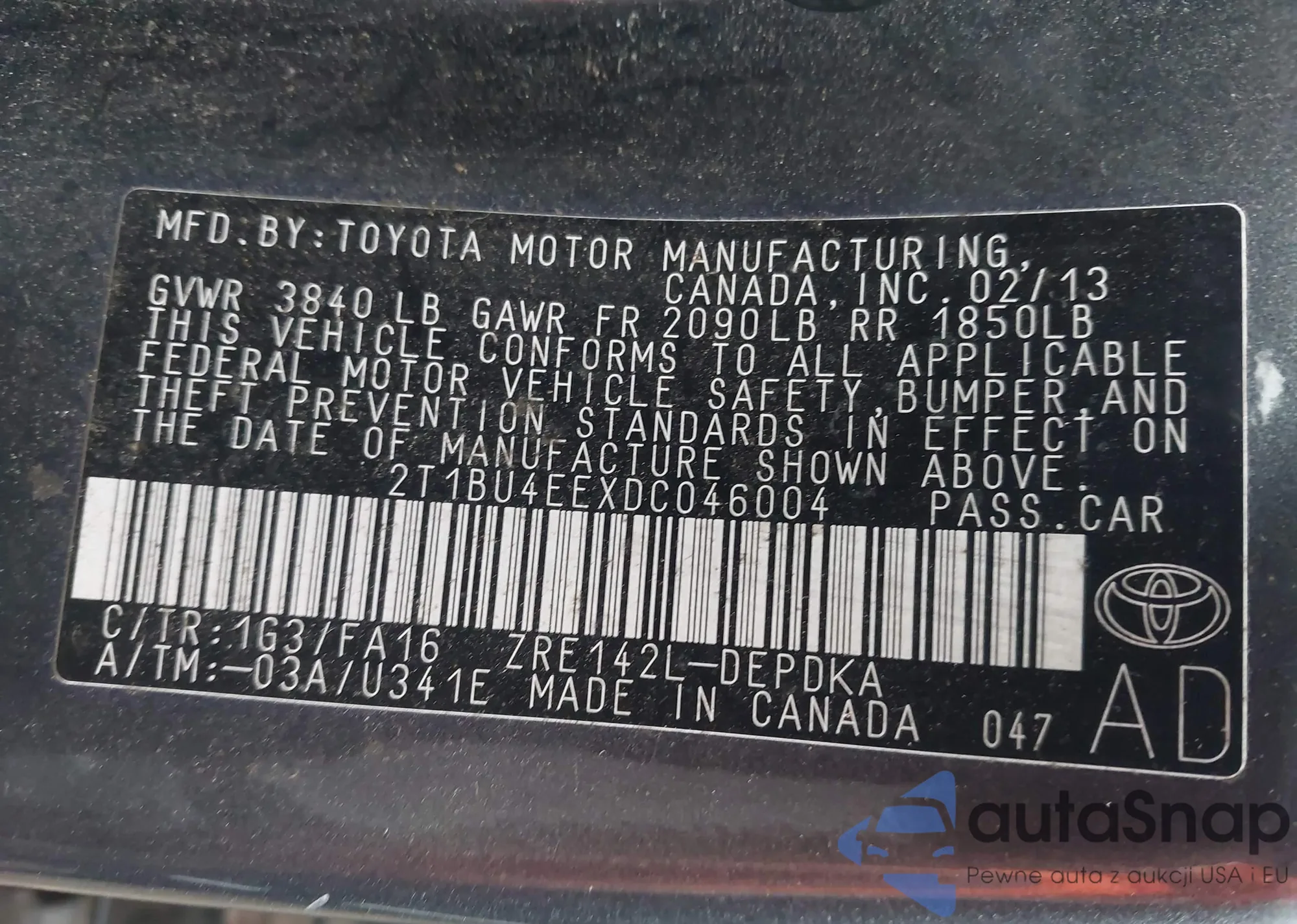 • VIN 2T1BU4EEXDC046004