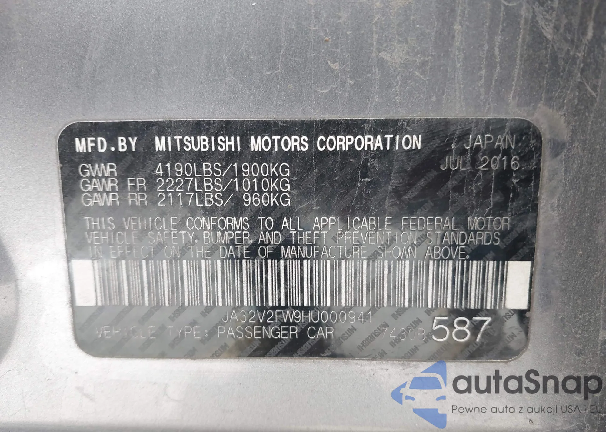 • VIN JA32V2FW9HU000941