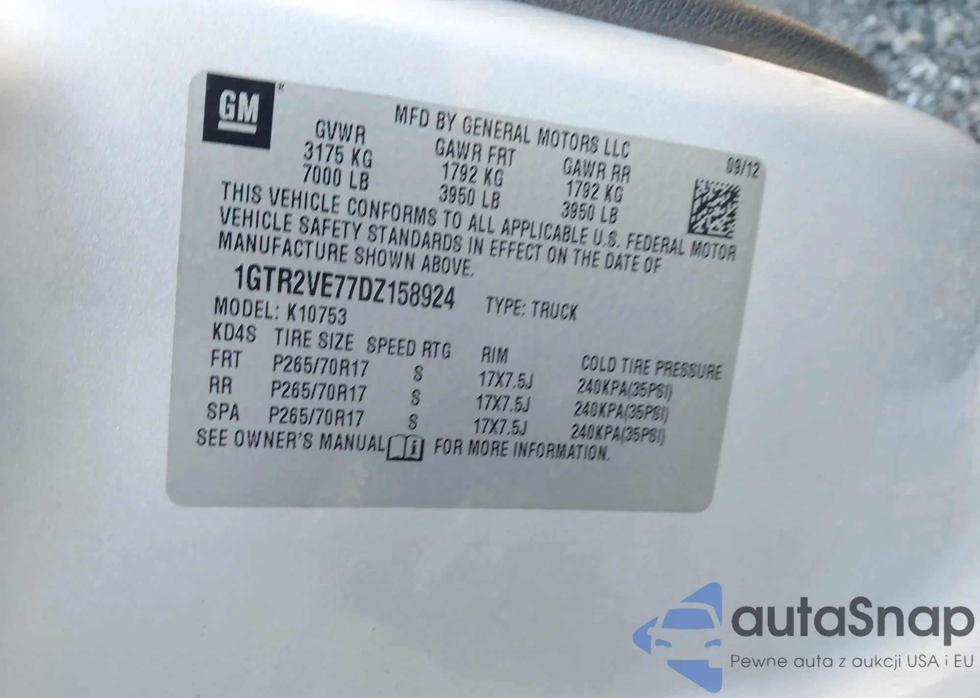 • VIN 1GTR2VE77DZ158924
