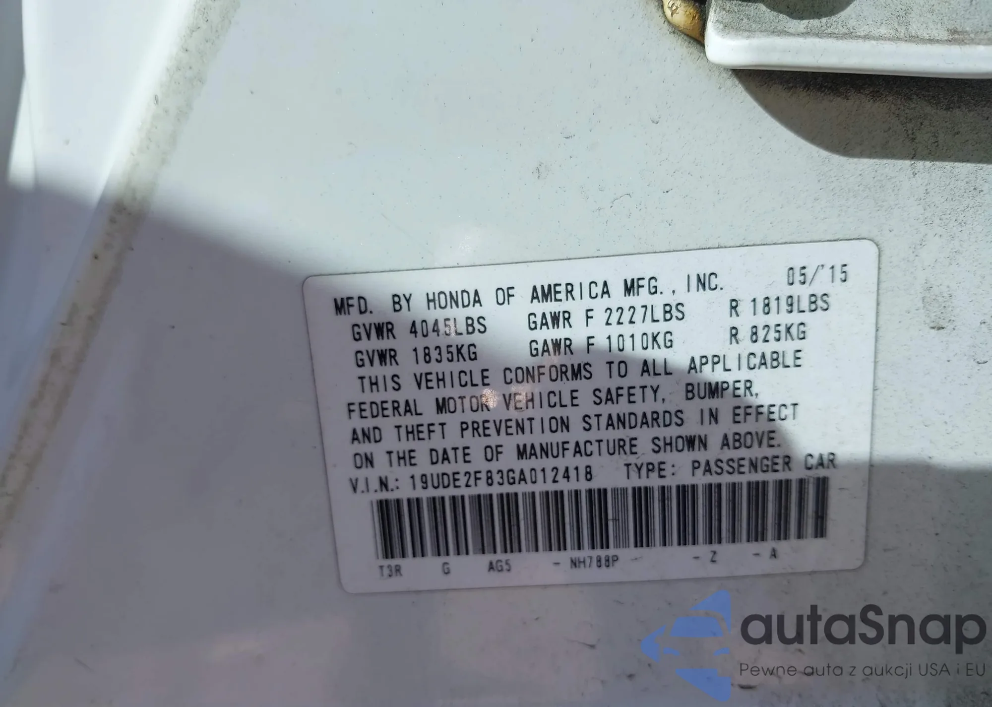 • VIN 19UDE2F83GA012418