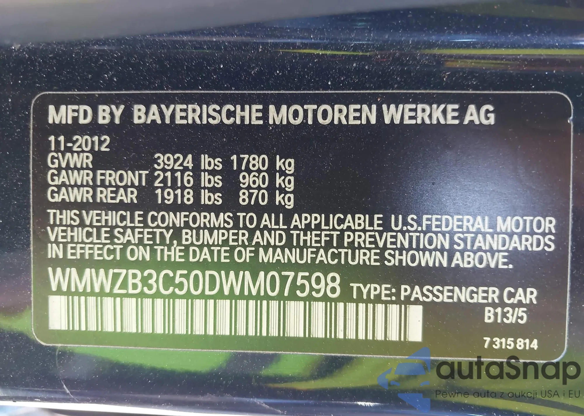 • VIN WMWZB3C50DWM07598