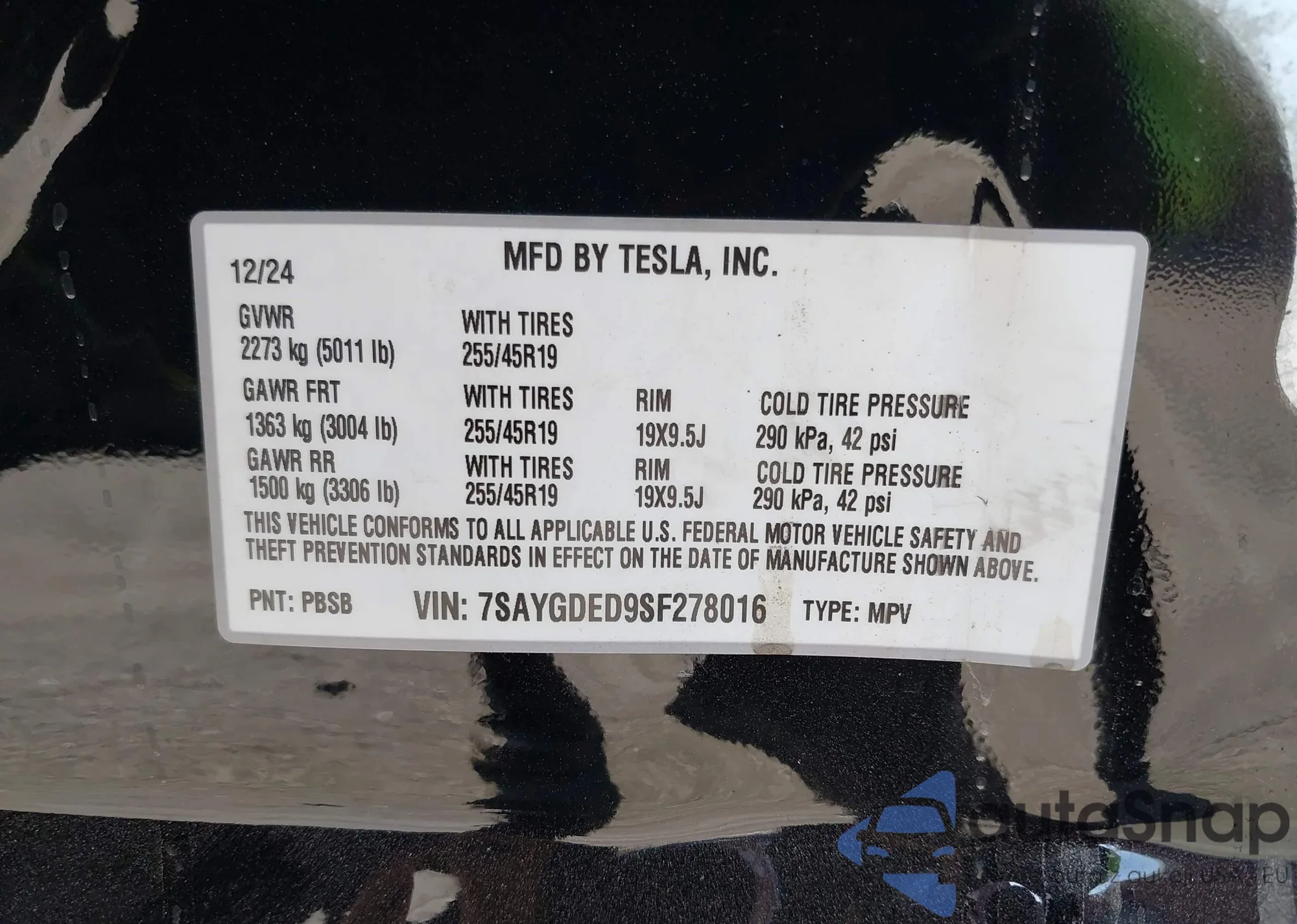 • VIN 7SAYGDED9SF278016
