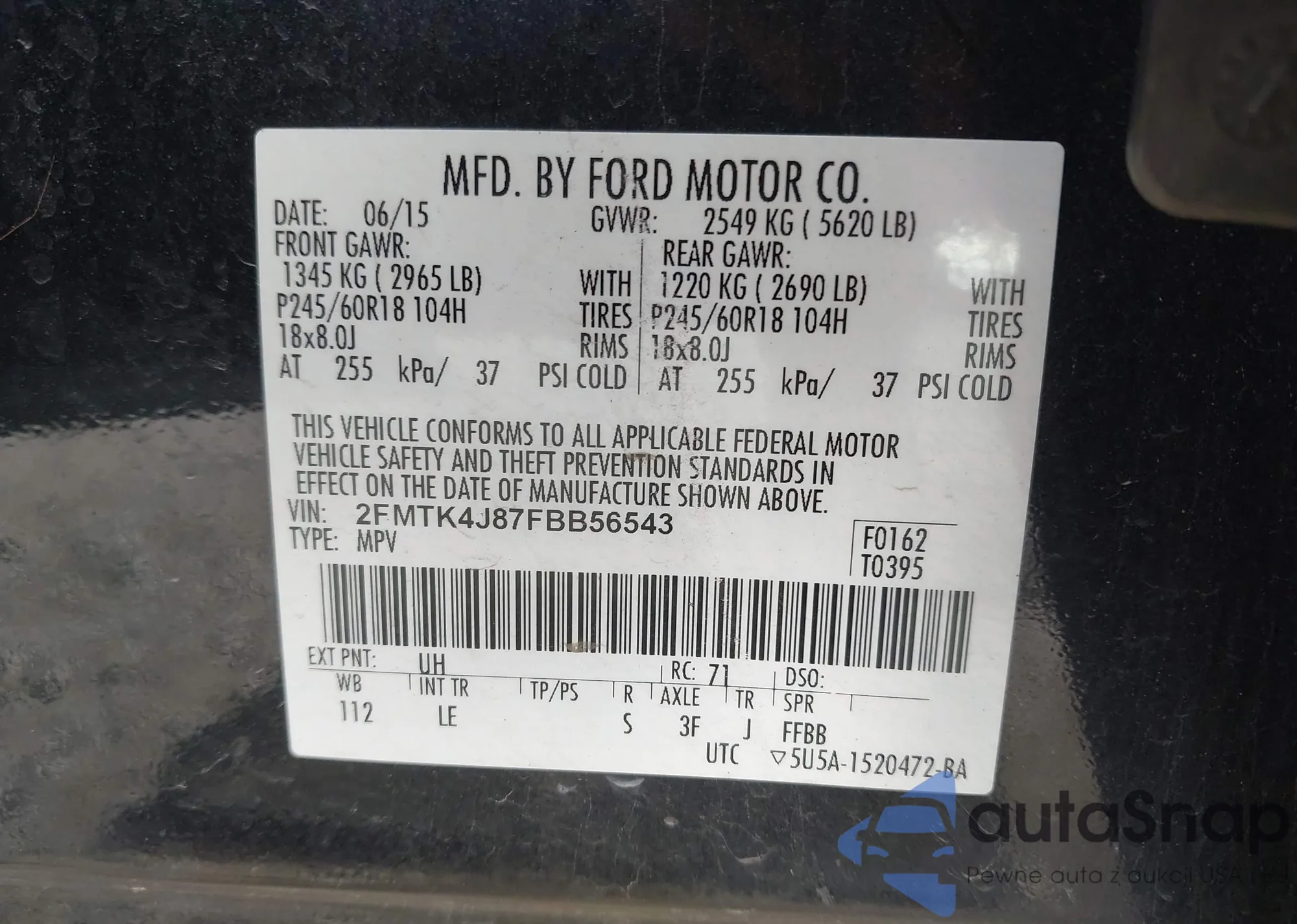 • VIN 2FMTK4J87FBB56543