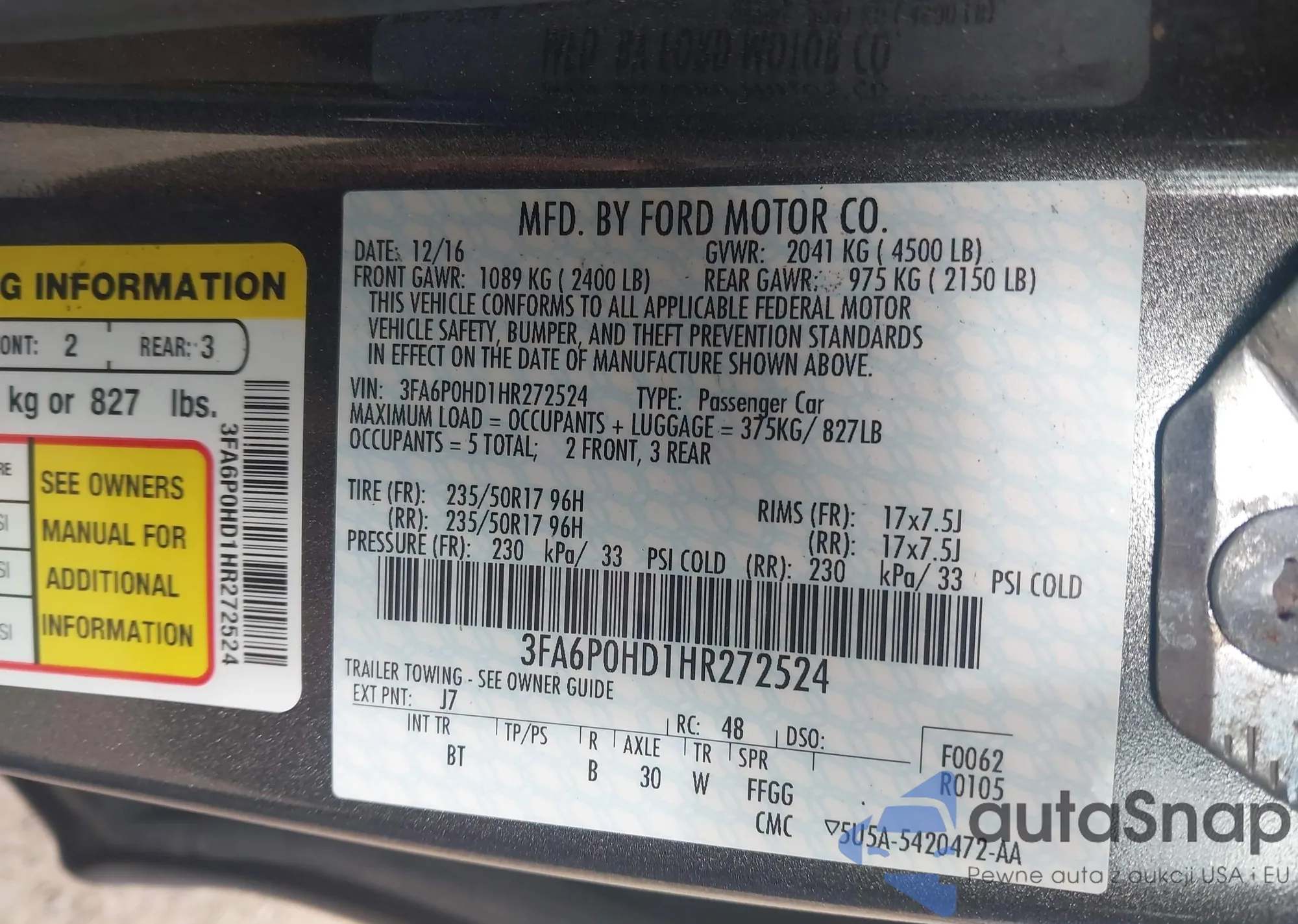 LOT: 43597220 VIN: 1FAHP3H23CL285405