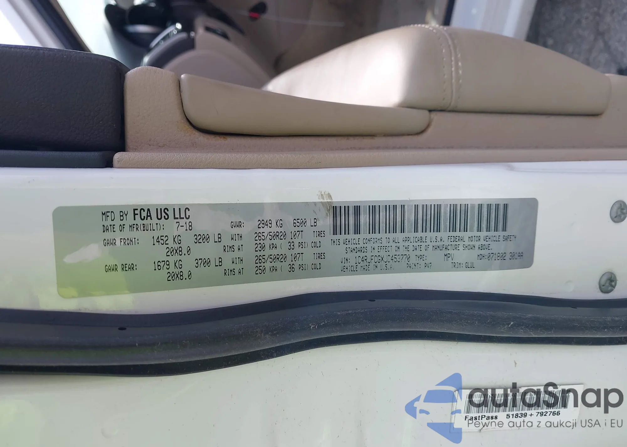• VIN 1C4RJFCGXJC453770