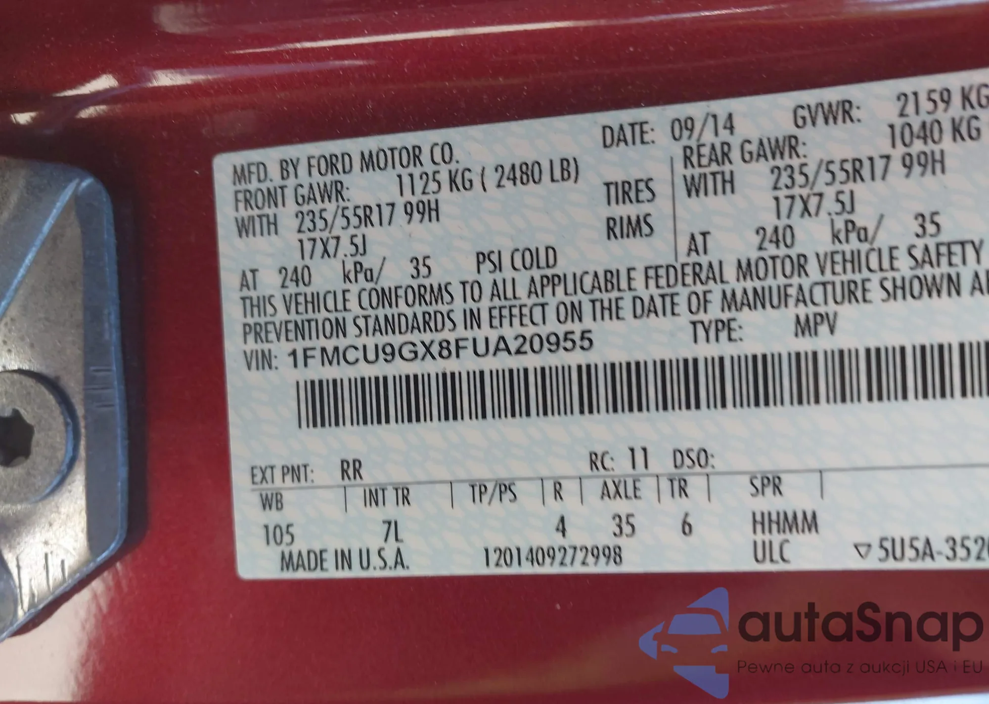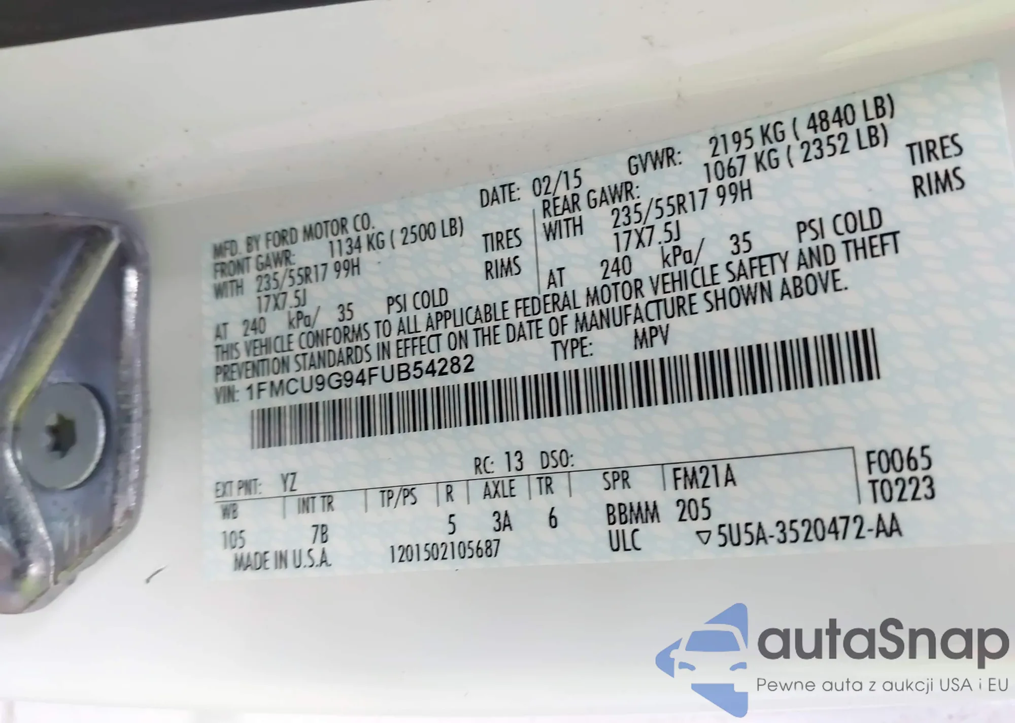 LOT: 43709551 VIN: 1FMCU9G94FUB54282