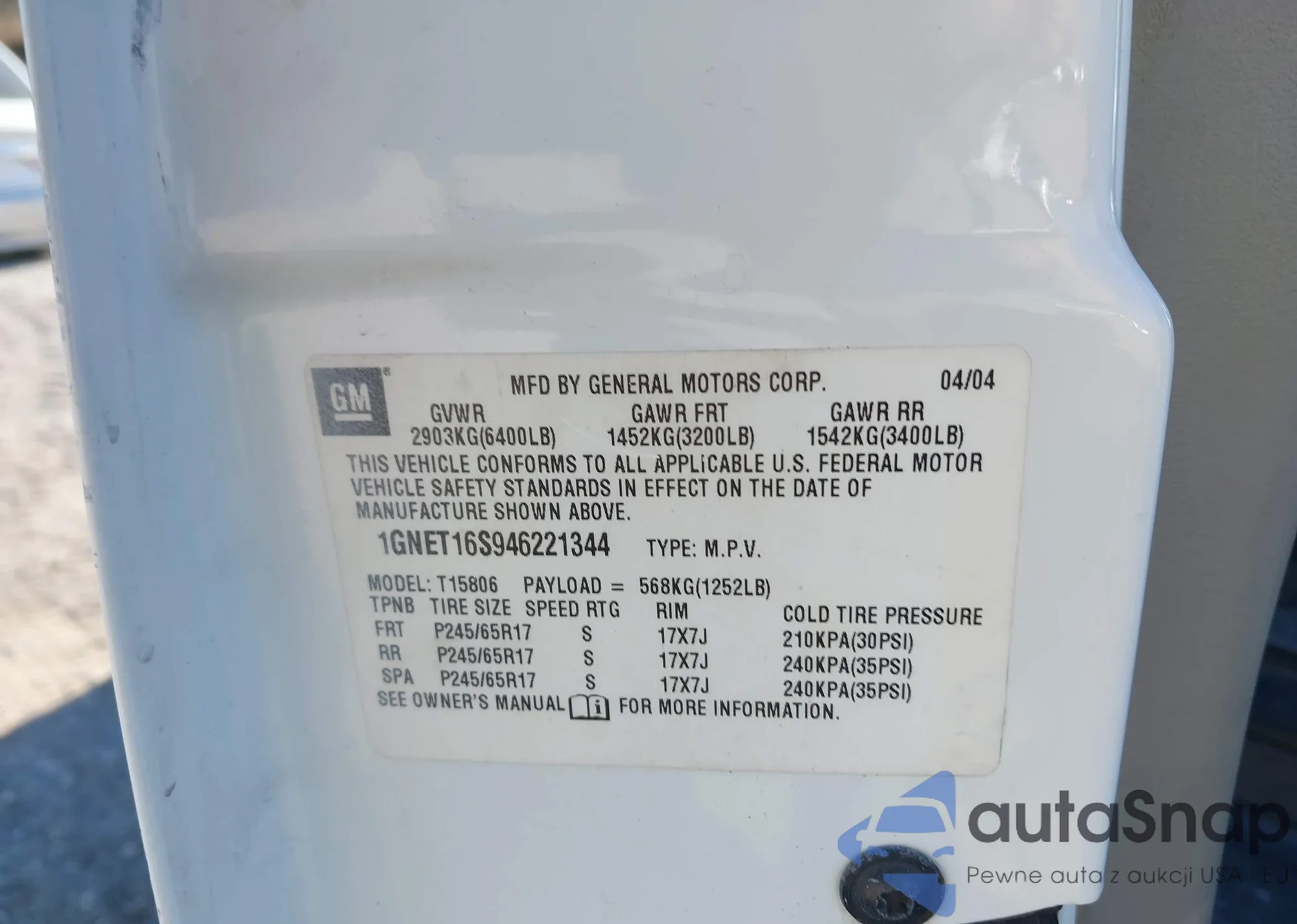 • VIN 1GNET16S946221344