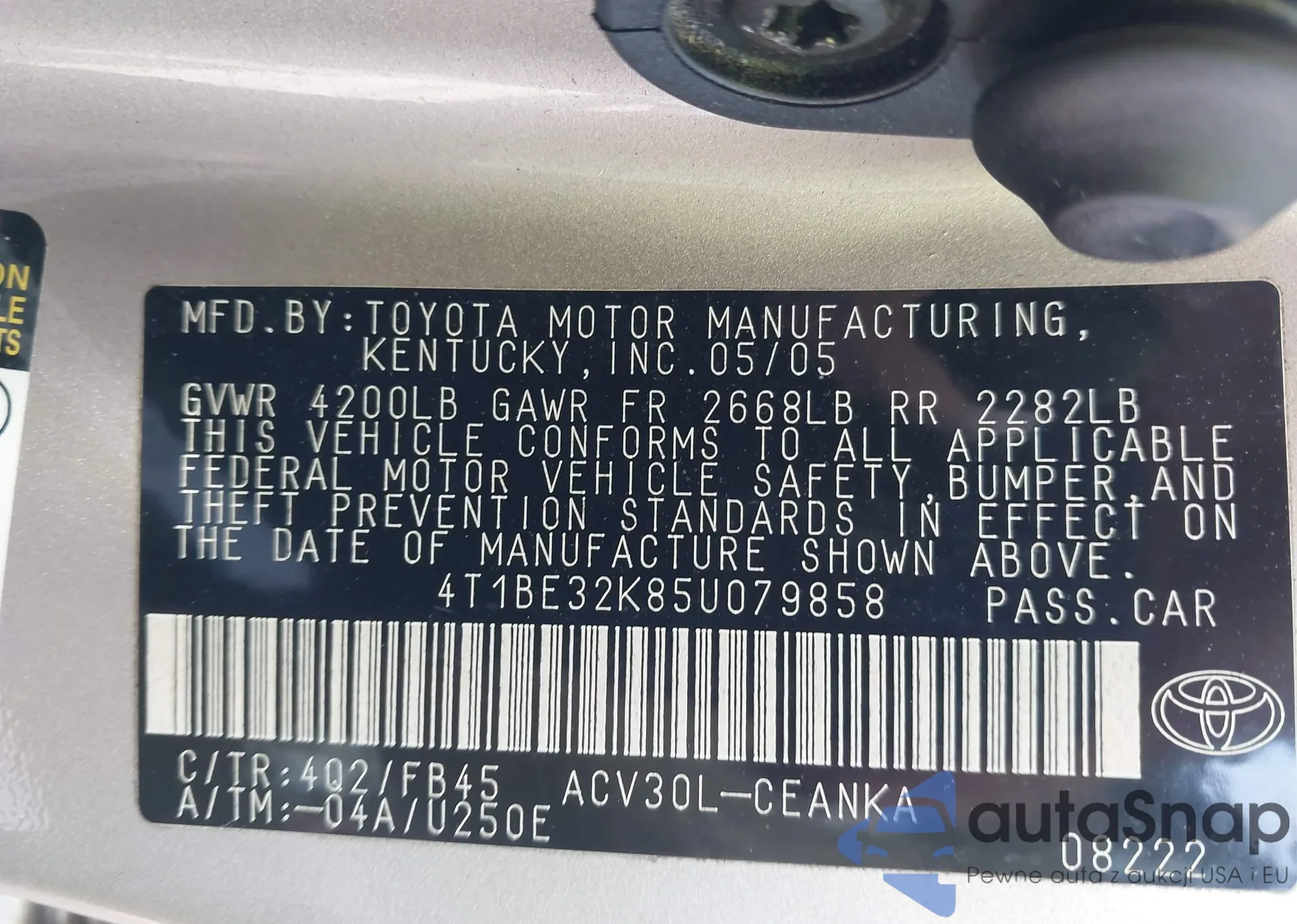 • VIN 4T1BE32K85U079858