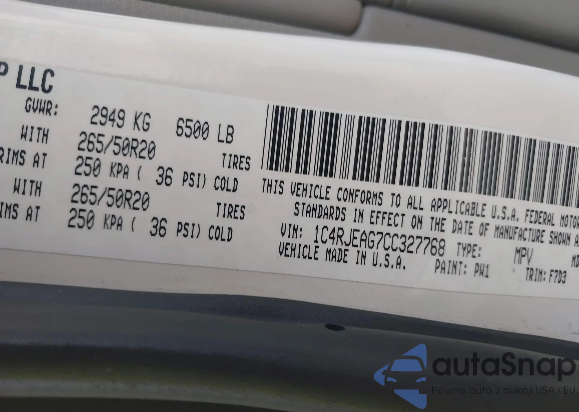 • VIN 1C4RJEAG7CC327768
