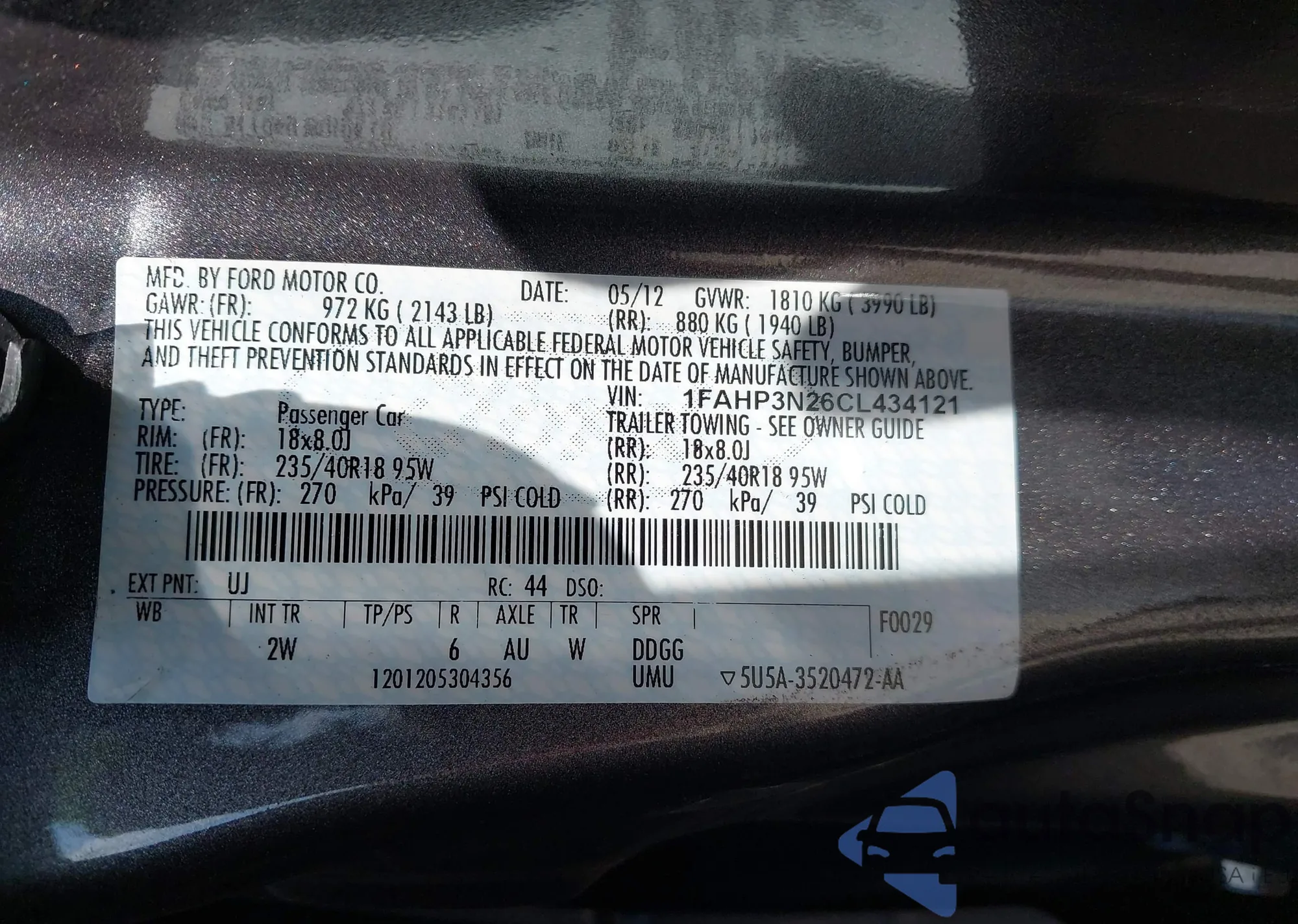 LOT: 43115372 VIN: 1FAHP3N26CL434121
