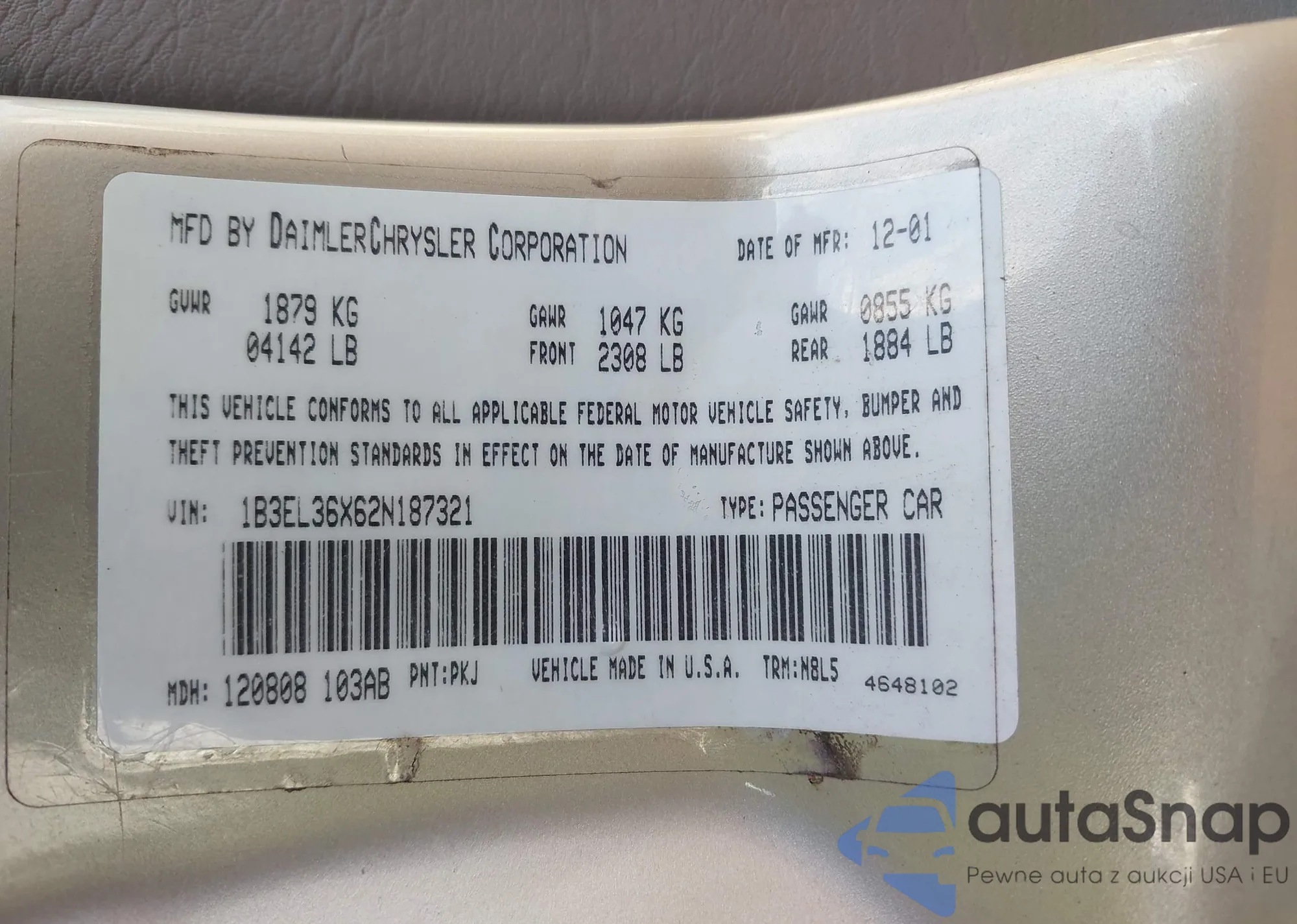 LOT: 43199173 VIN: 1B3EL36X62N187321
