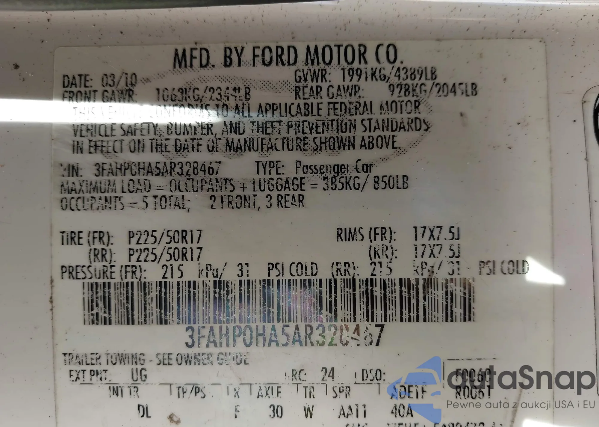 LOT: 43570164 VIN: 3FAHP0HA5AR328467