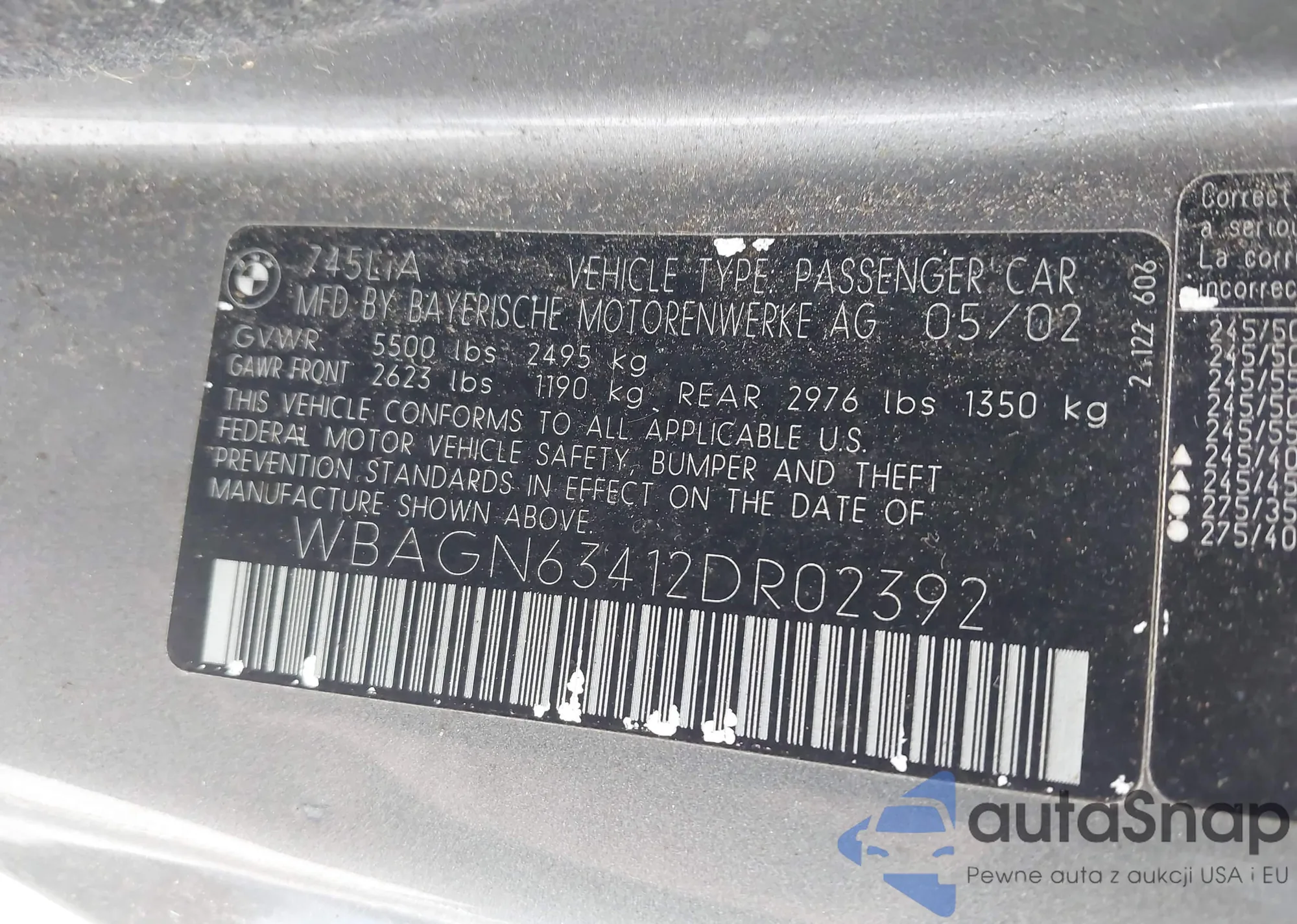 2002 BMW 745Li z USA, uszkodzony, nr VIN WBAGN63412DR02392