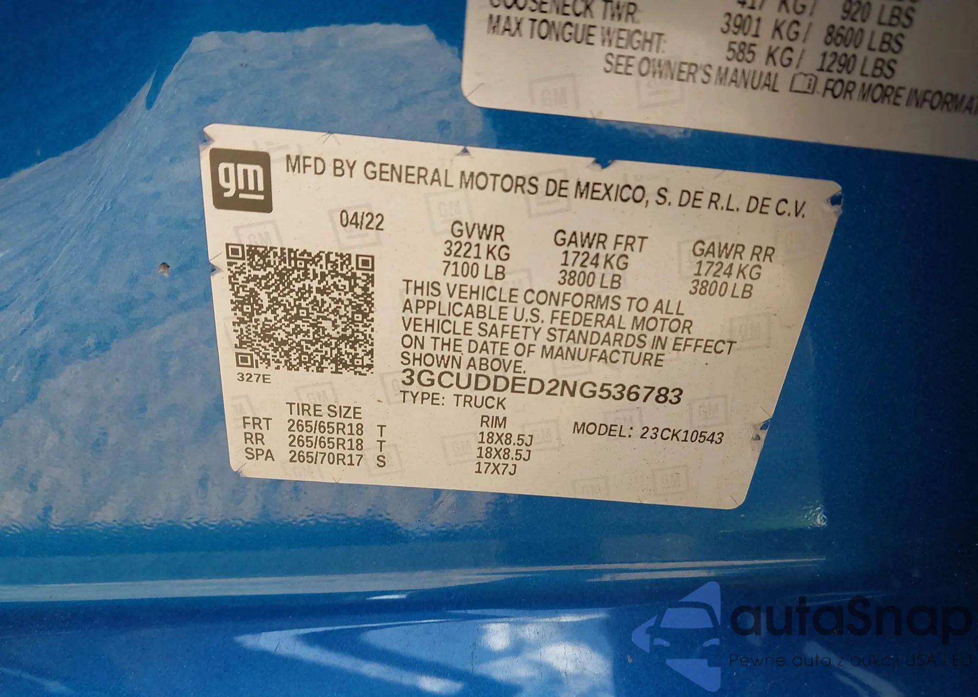 • VIN 3GCUDDED2NG536783