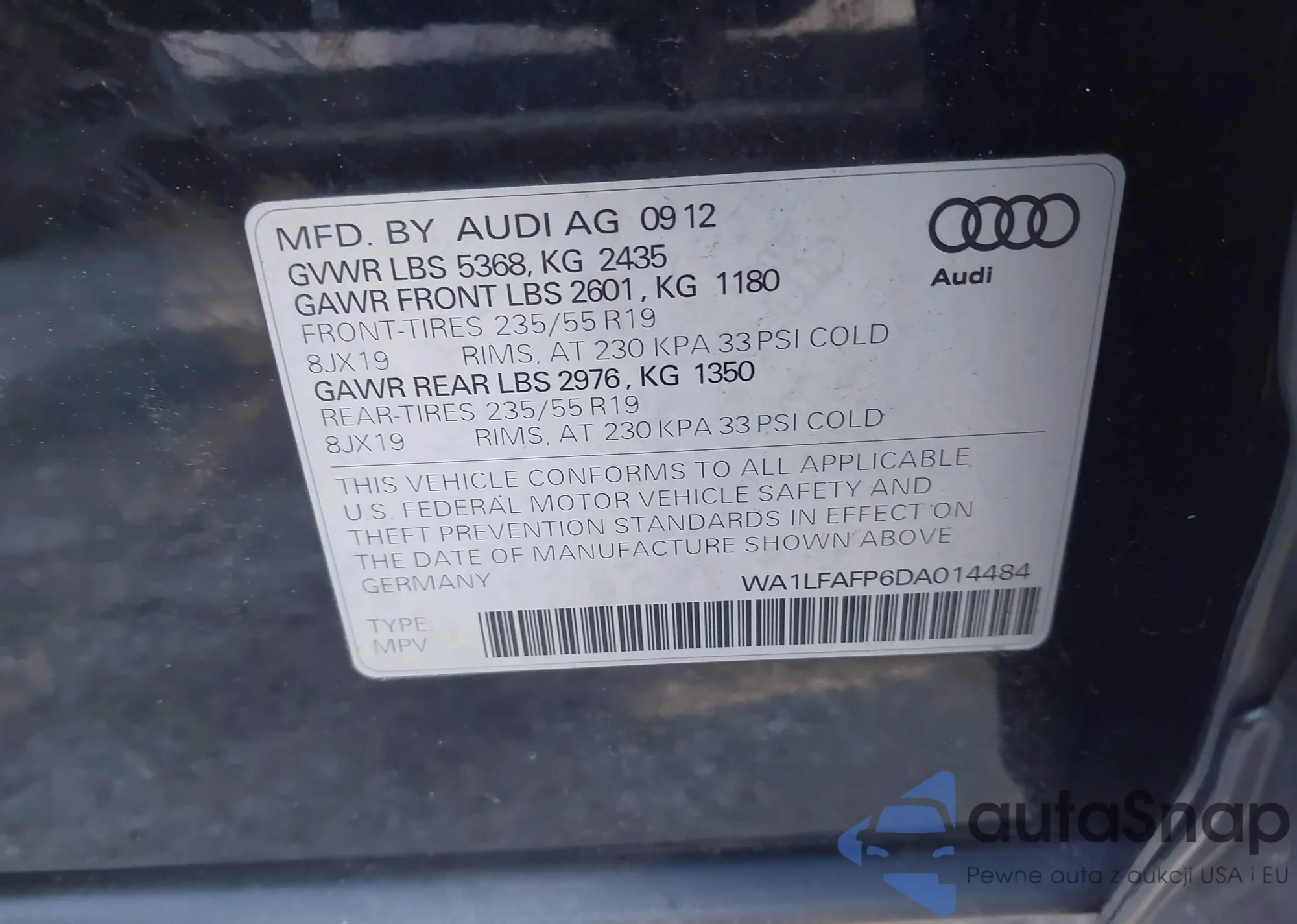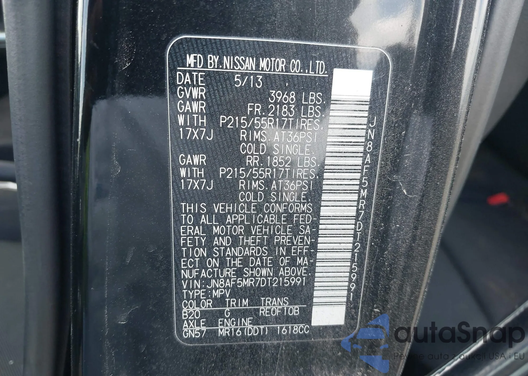 LOT: 43343539 VIN: JN8AF5MR7DT215991