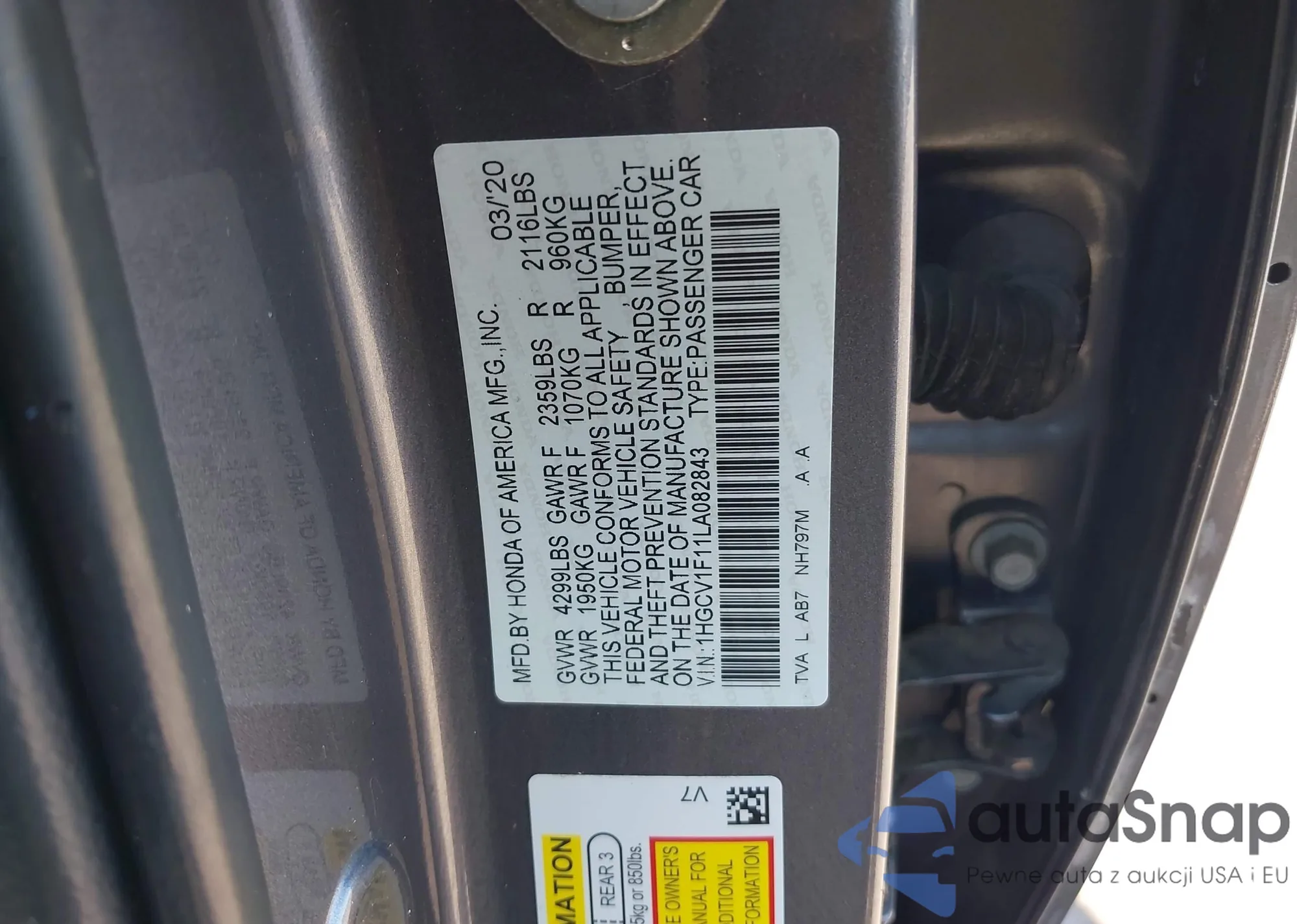 • VIN 1HGCV1F11LA082843