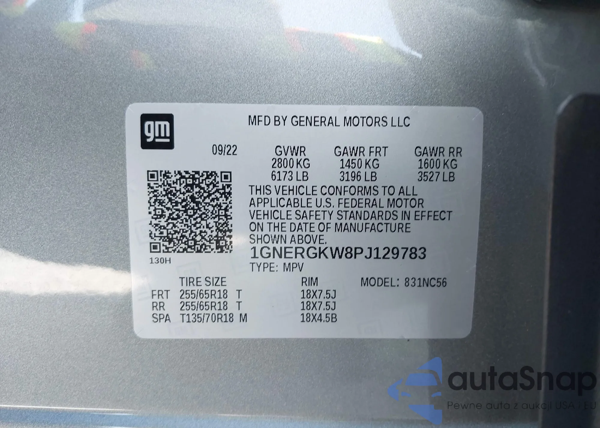 LOT: 43334491 VIN: 1GNERGKW8PJ129783