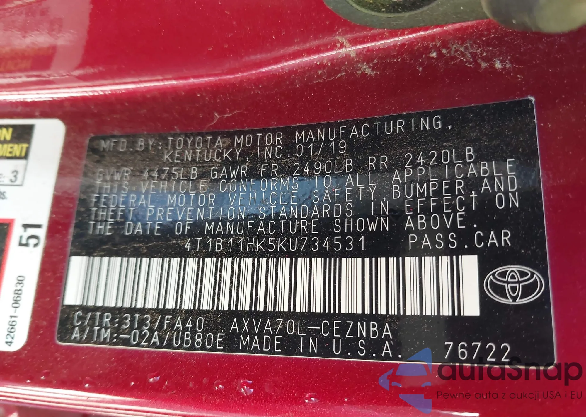 LOT: 43338962 VIN: JTEMU5JR3M5902887