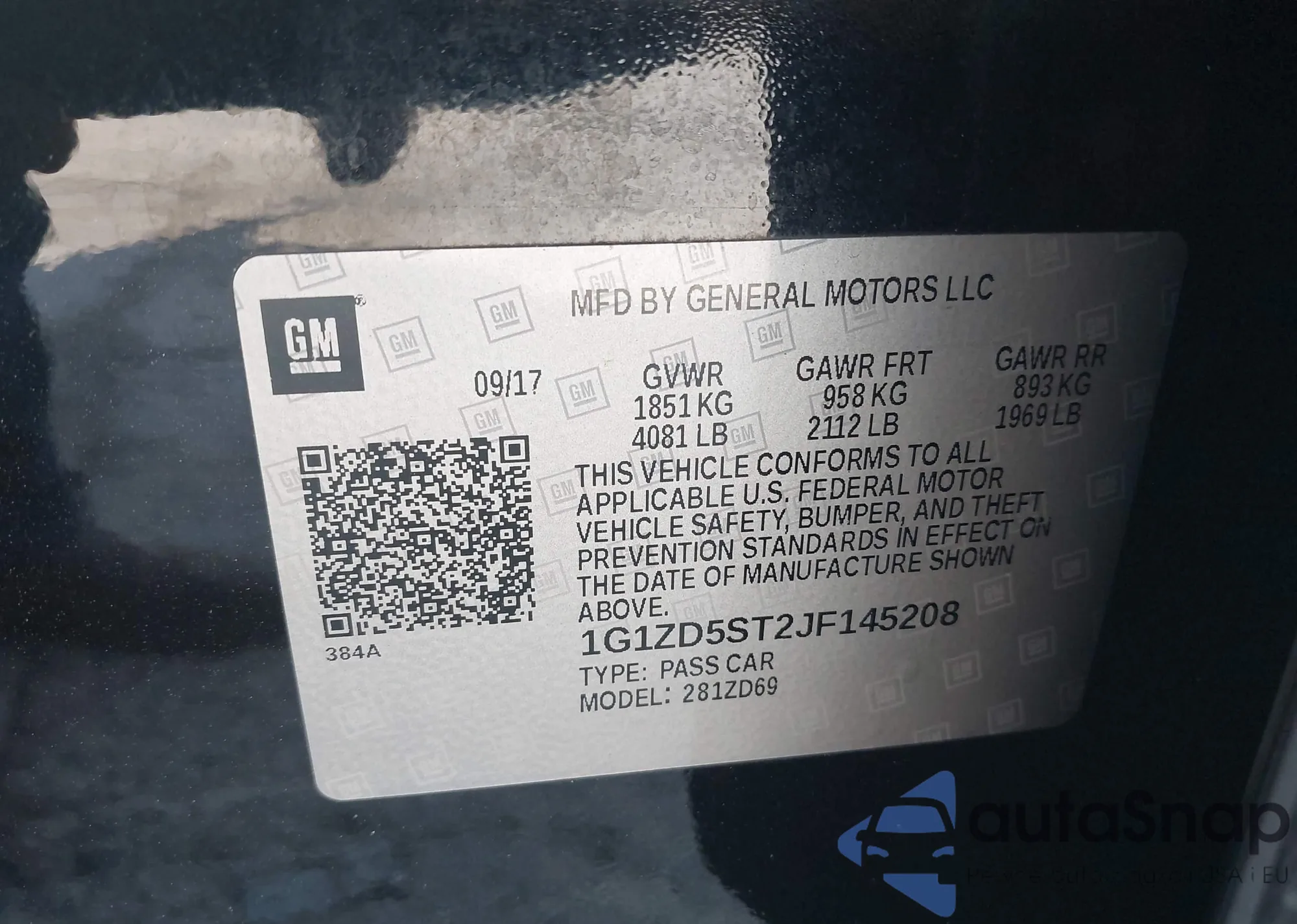 • VIN 1G1ZD5ST2JF145208