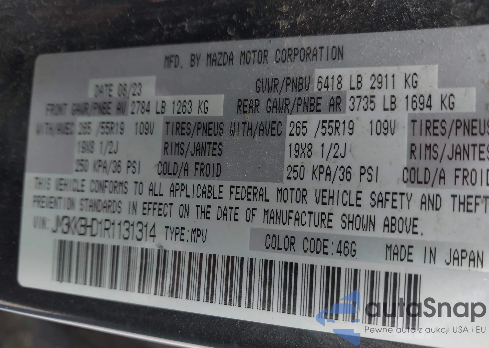 LOT: 43116380 VIN: JM3KKBHD1R1131314