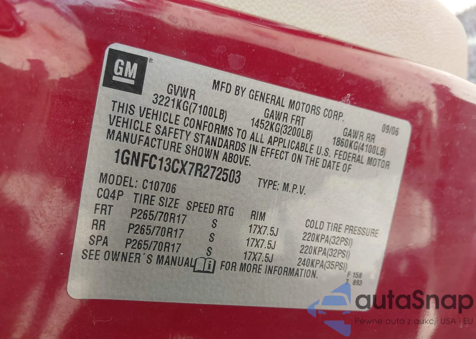 • VIN 1GNFC13CX7R272503