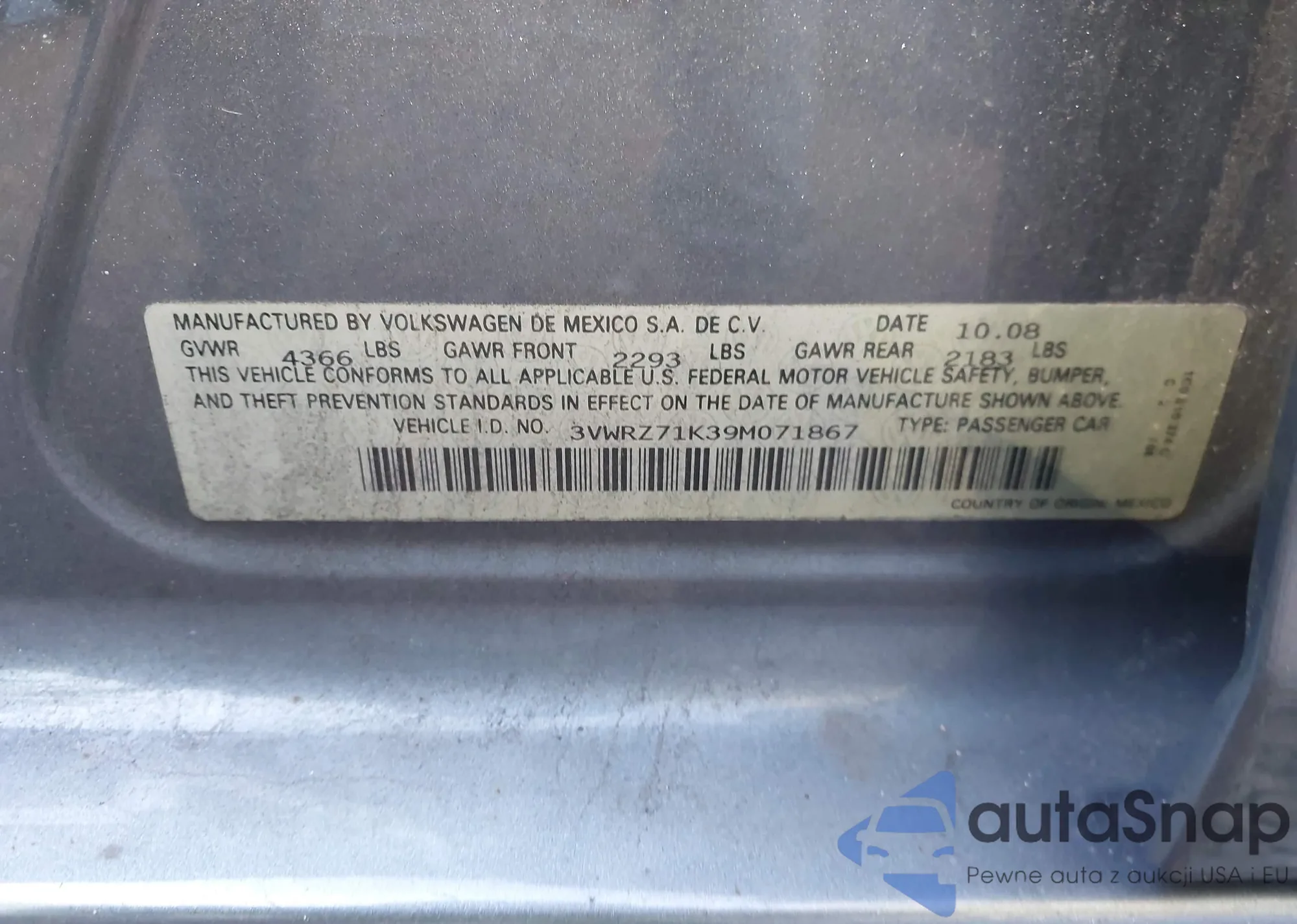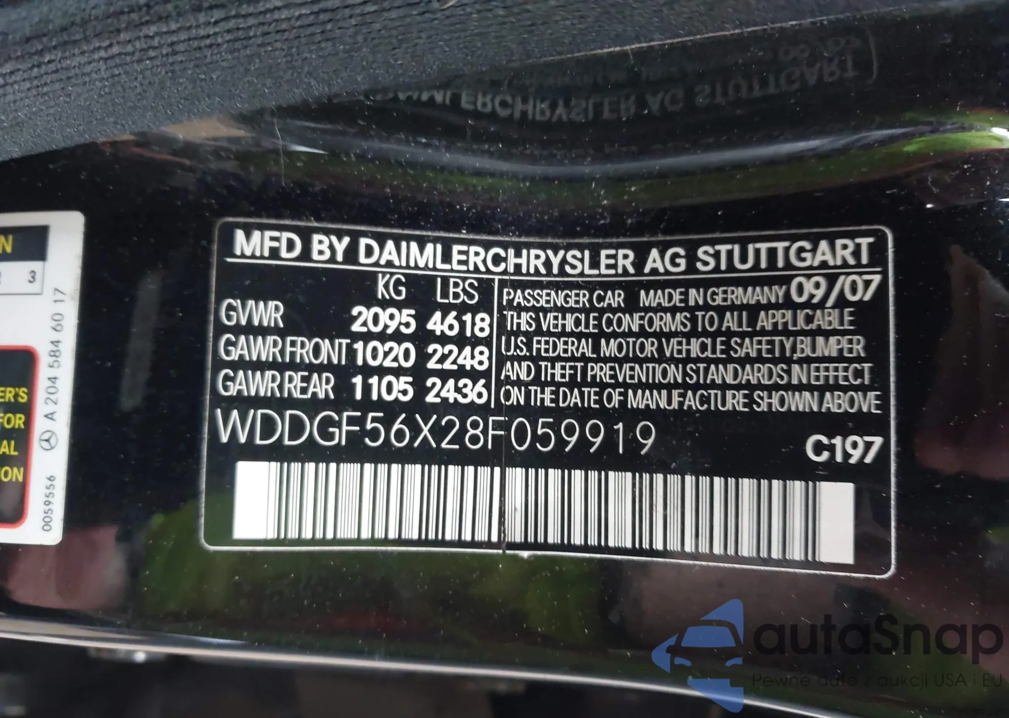 LOT: 43498386 VIN: WDDGF56X28F059919