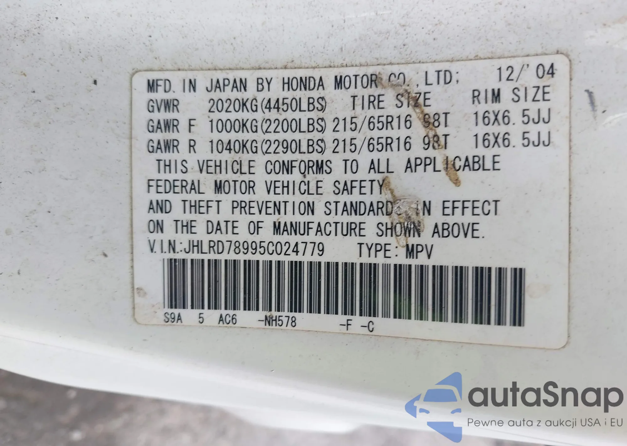 • VIN JHLRD78995C024779