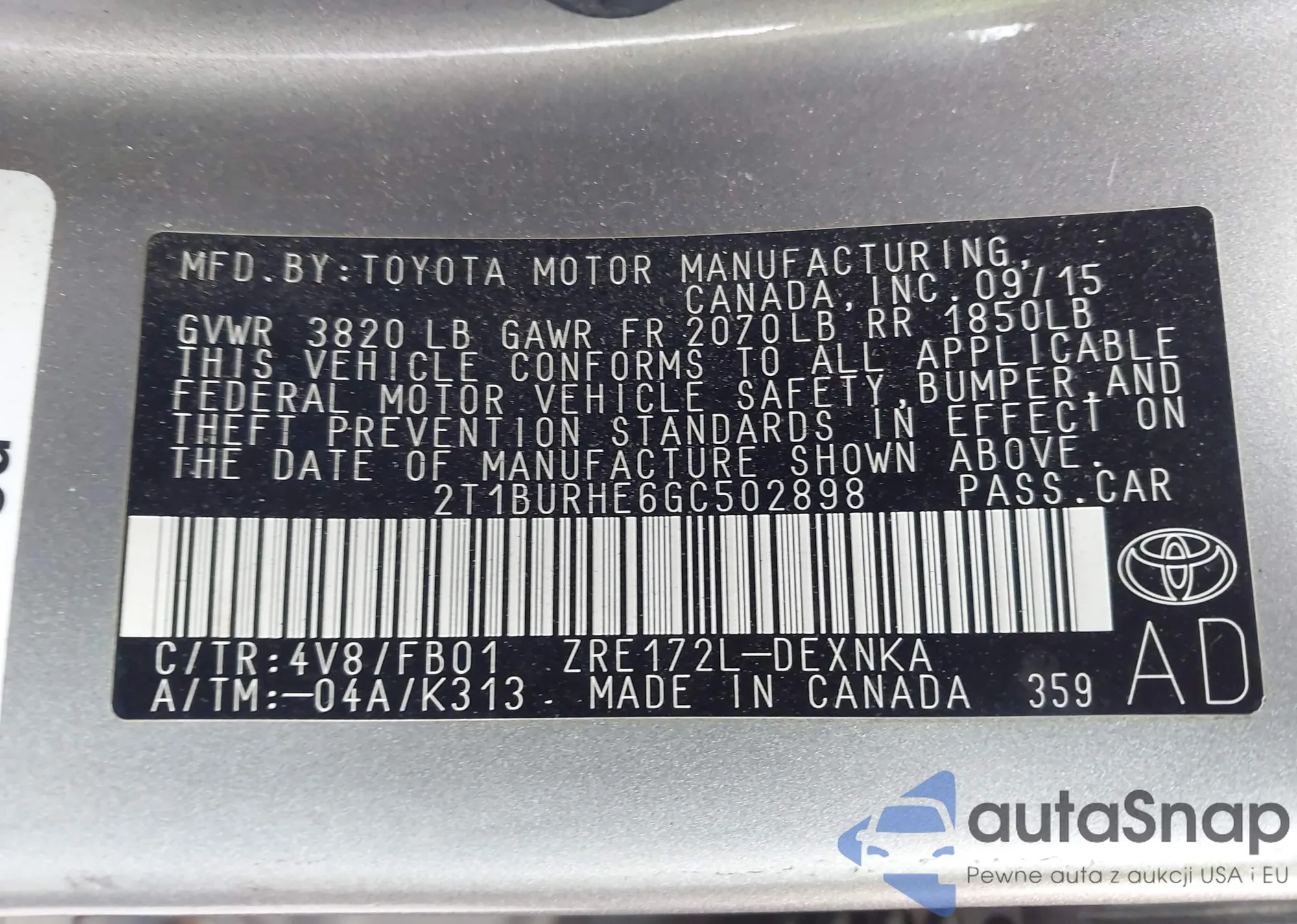 • VIN 2T1BURHE6GC502898