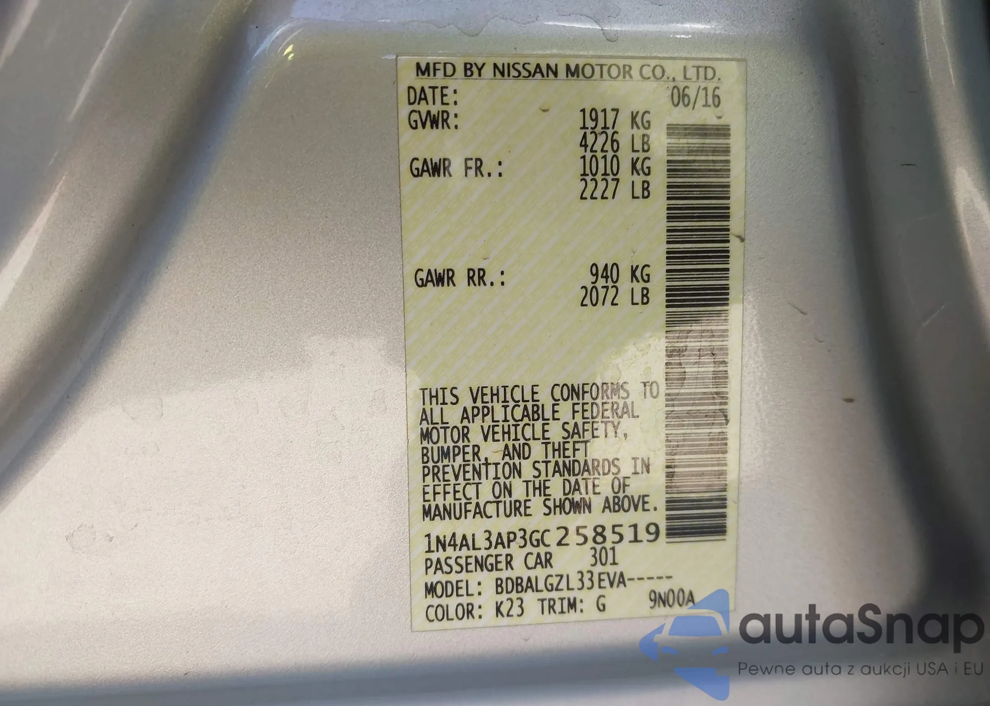 LOT: 43583142 VIN: 1HGCR2F36DA170171