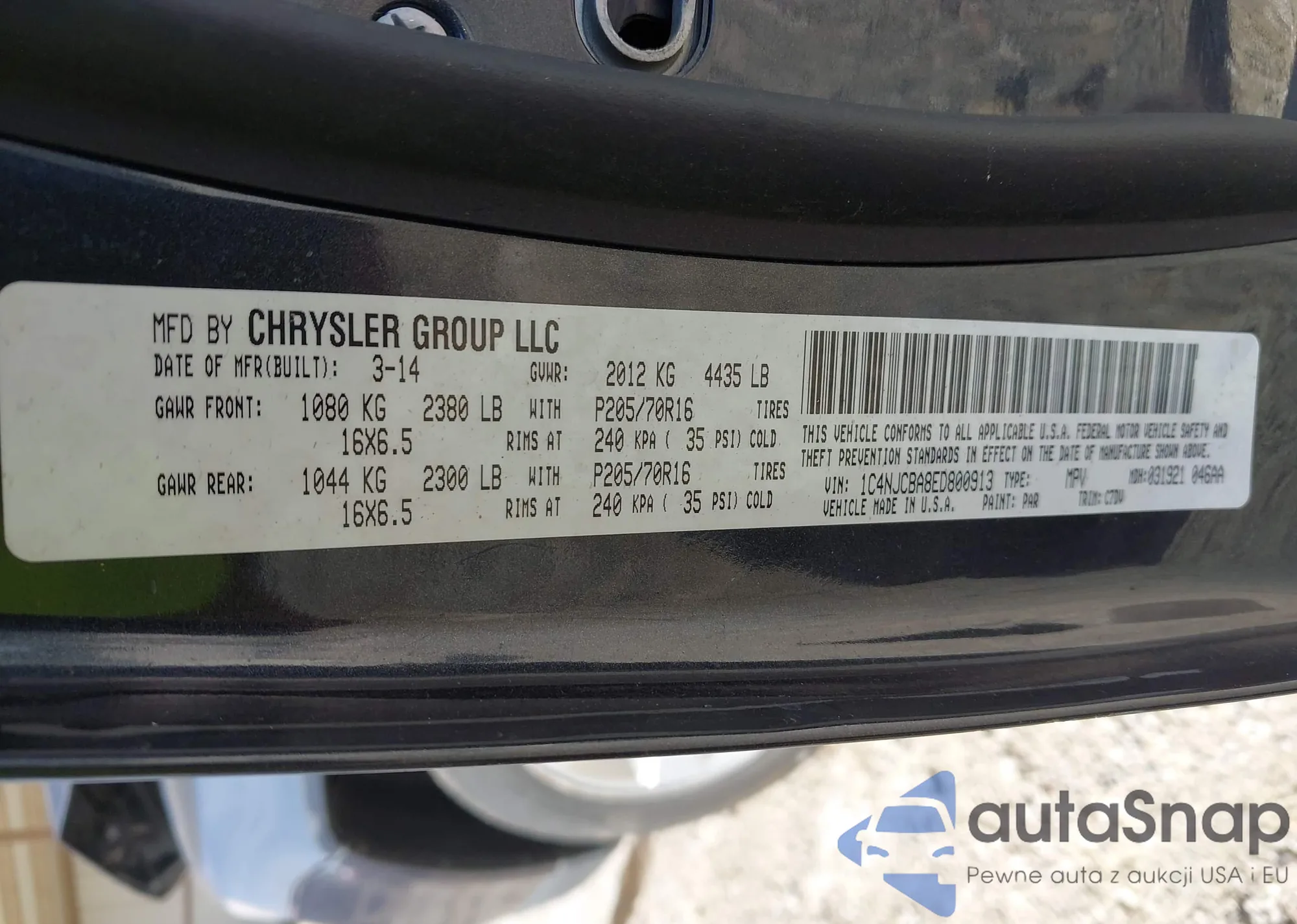 • VIN 1C4NJCBA8ED800913