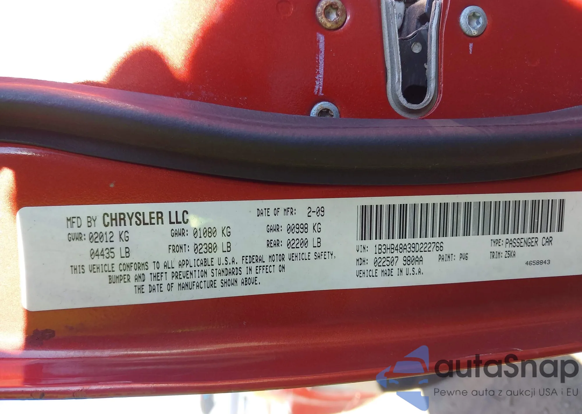 LOT: 43446903 VIN: 1B3HB48A39D222766