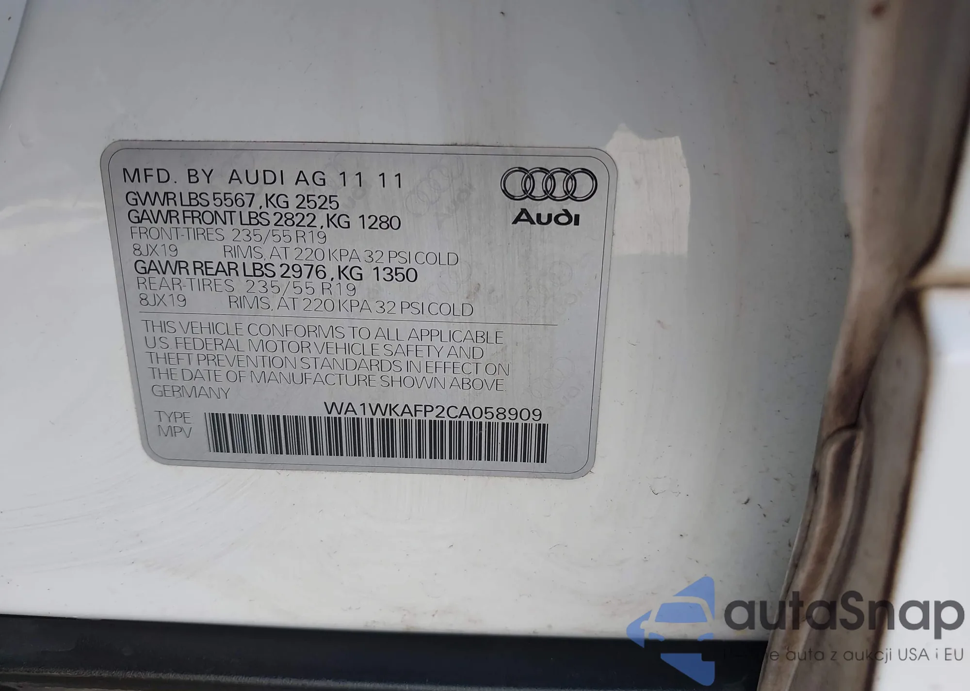 • VIN WA1WKAFP2CA058909