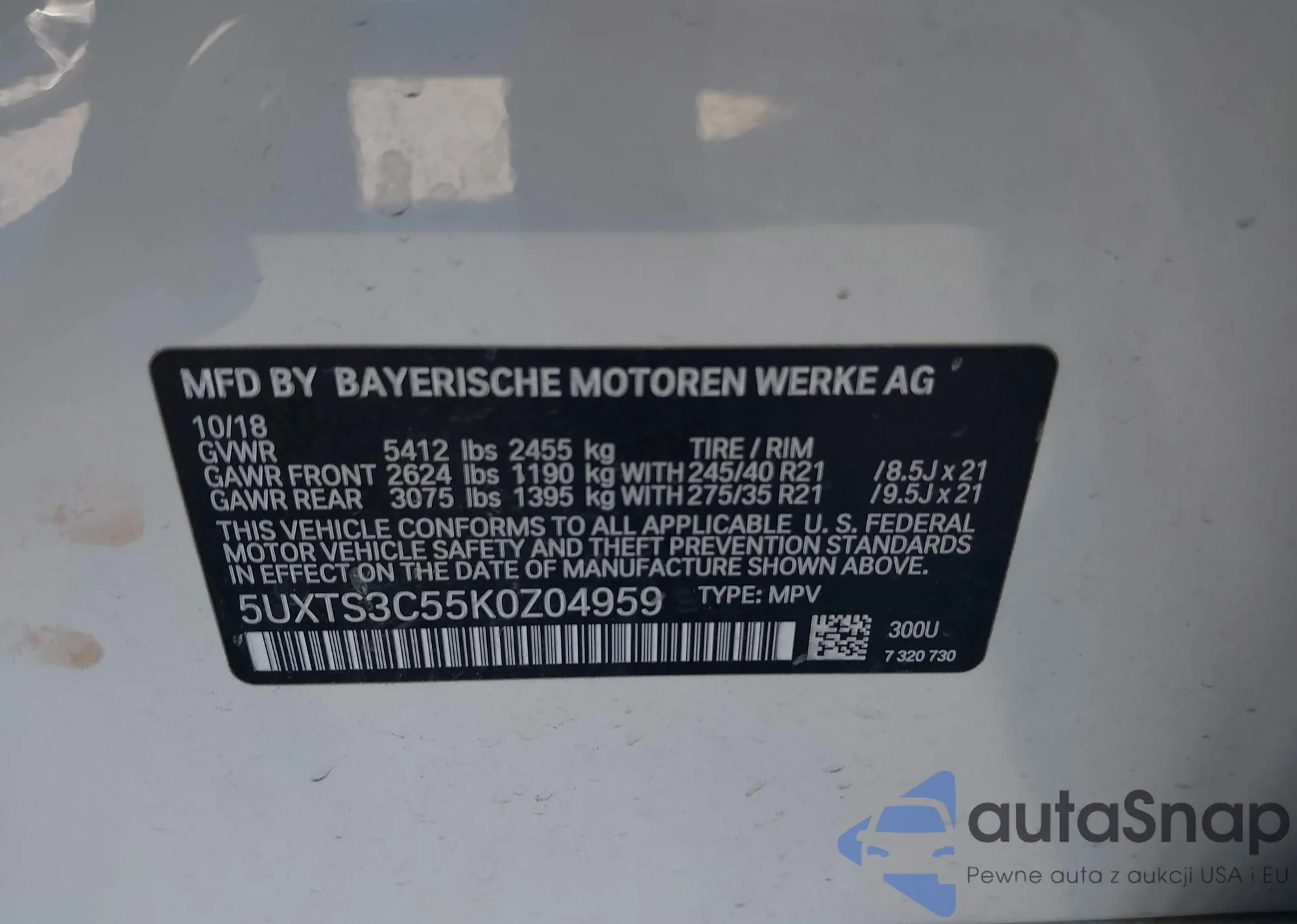 LOT: 43502575 VIN: 5UXTS3C55K0Z04959