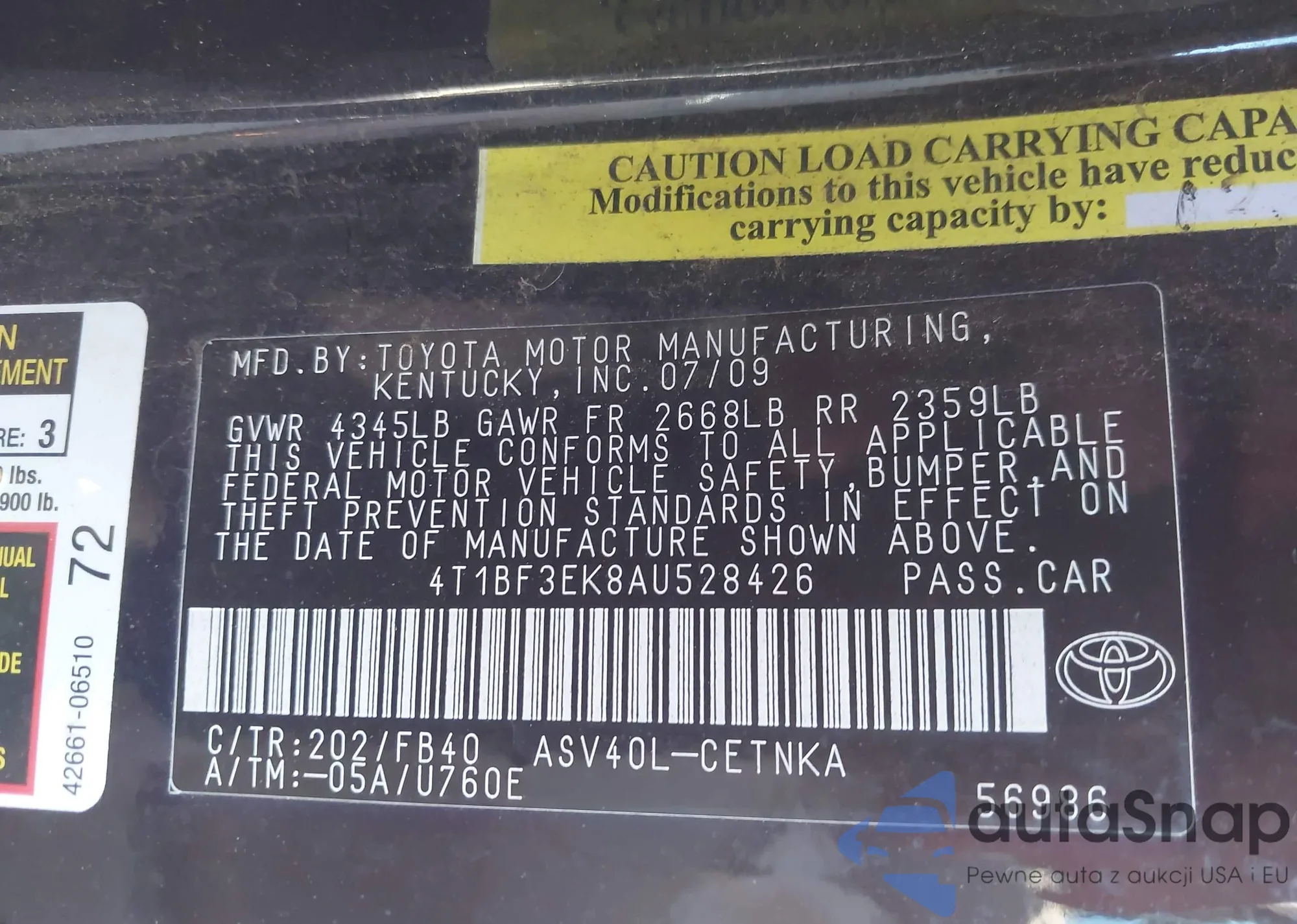 • VIN 4T1BF3EK8AU528426