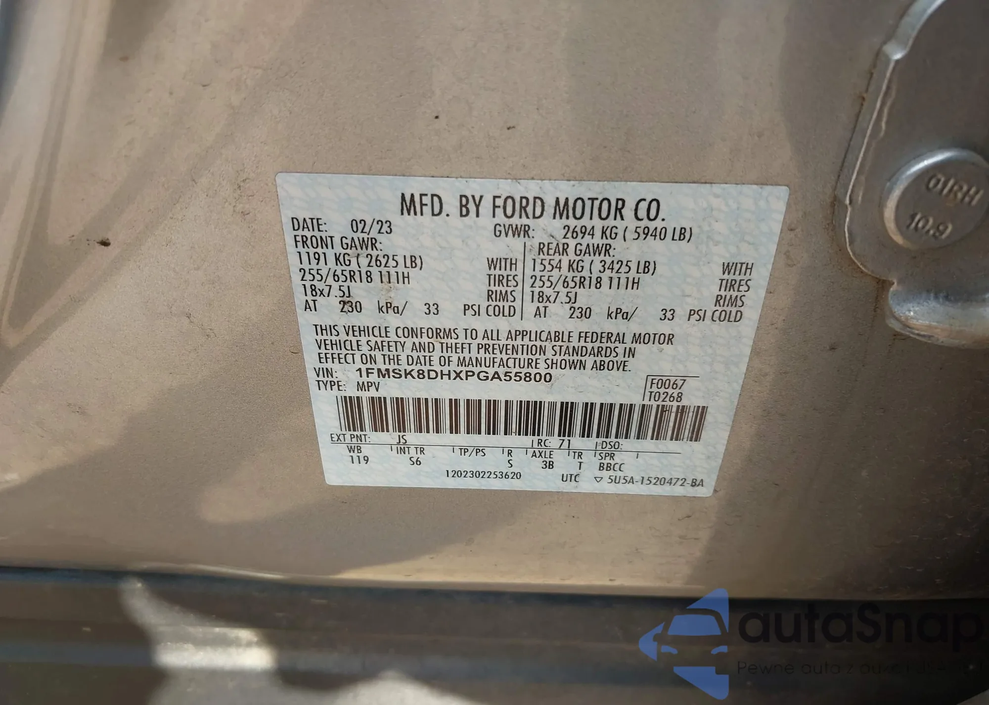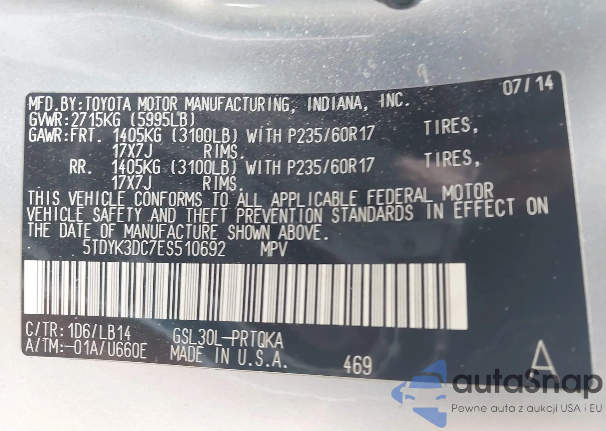 LOT: 43550756 VIN: 1FTPW12527KC99114