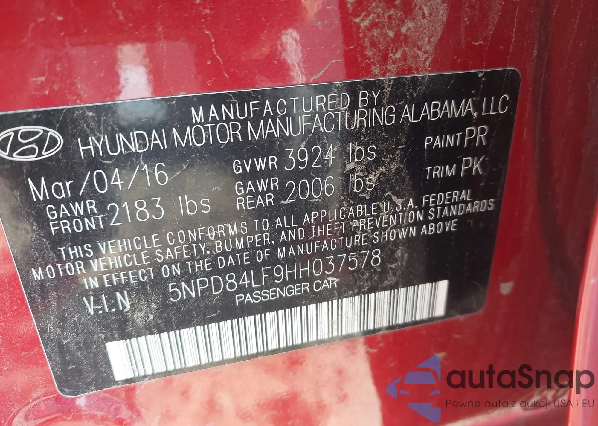 • VIN 5NPD84LF9HH037578