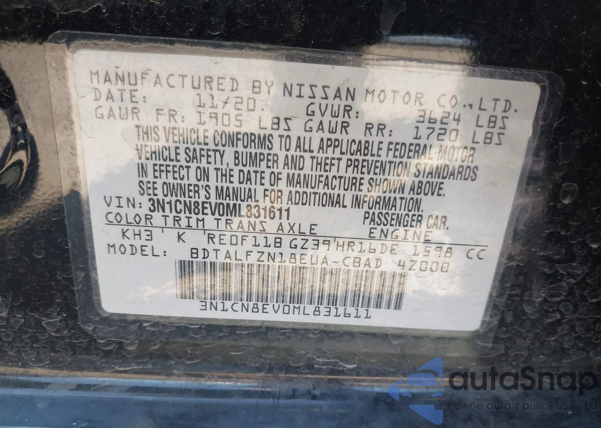 • VIN 3N1CN8EV0ML831611
